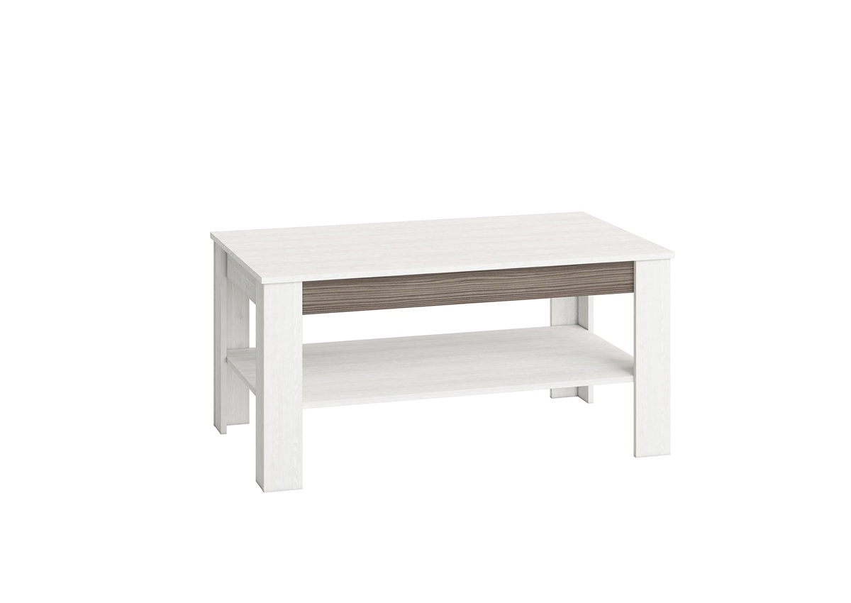 Konferenční stolek Blanco je vyroben v kombinaci materiálu lamino/MDF. Korpus je vyroben v dezénu borovice sněžná, dvířka jsou vyrobeny v kombinaci borovice sněžná a MDF new grey. Tento nový nábytkový systém Blanco vyniká svým jedinečným designem a to dřevěnými držadly a stylem, který dokonale harmonizuje a kontrastuje s lemováním na přední straně. Systém Blanco je vhodný jak do obývacího pokoje tak i do pokoje dnešního teenagera. Zboží dodáváme v demontu.
