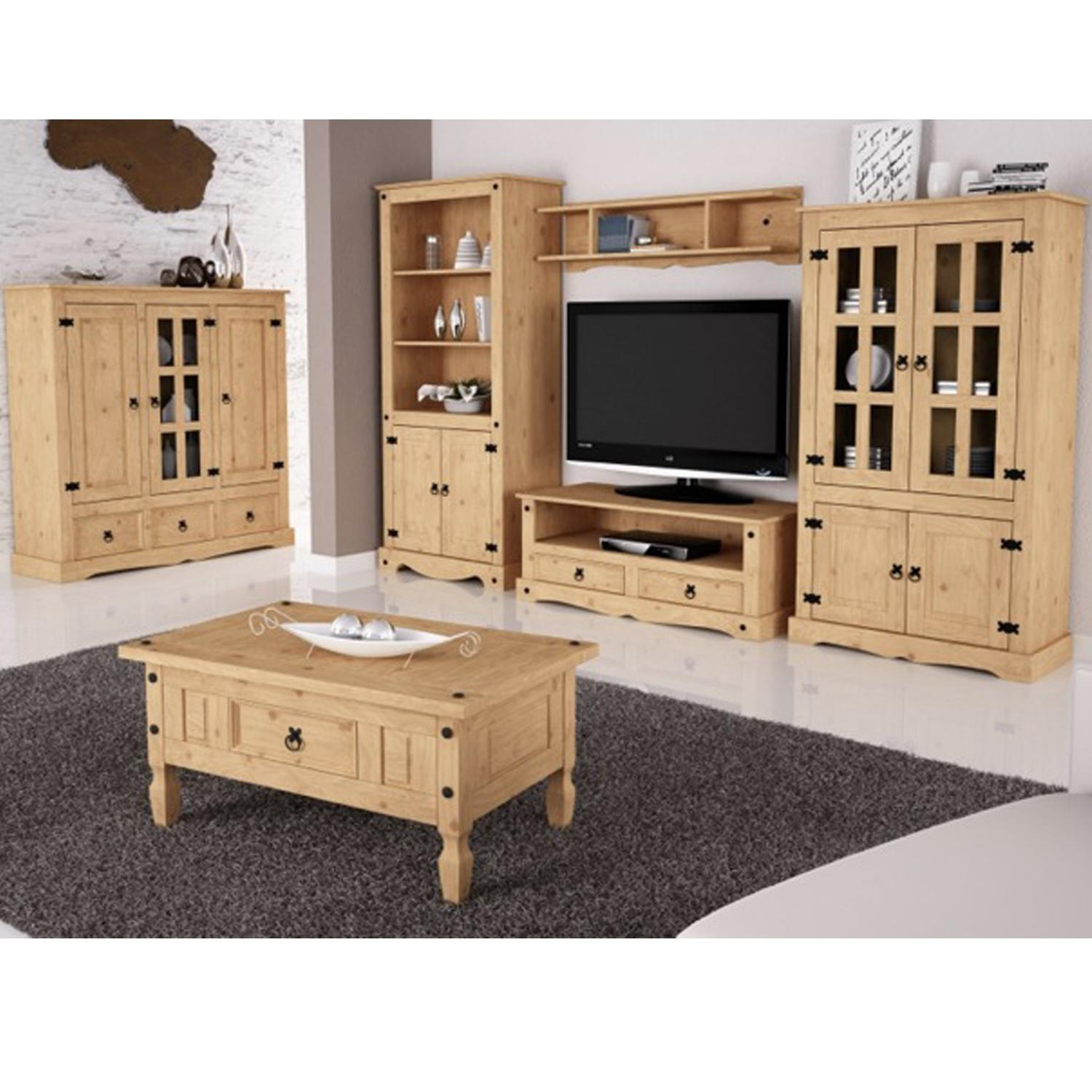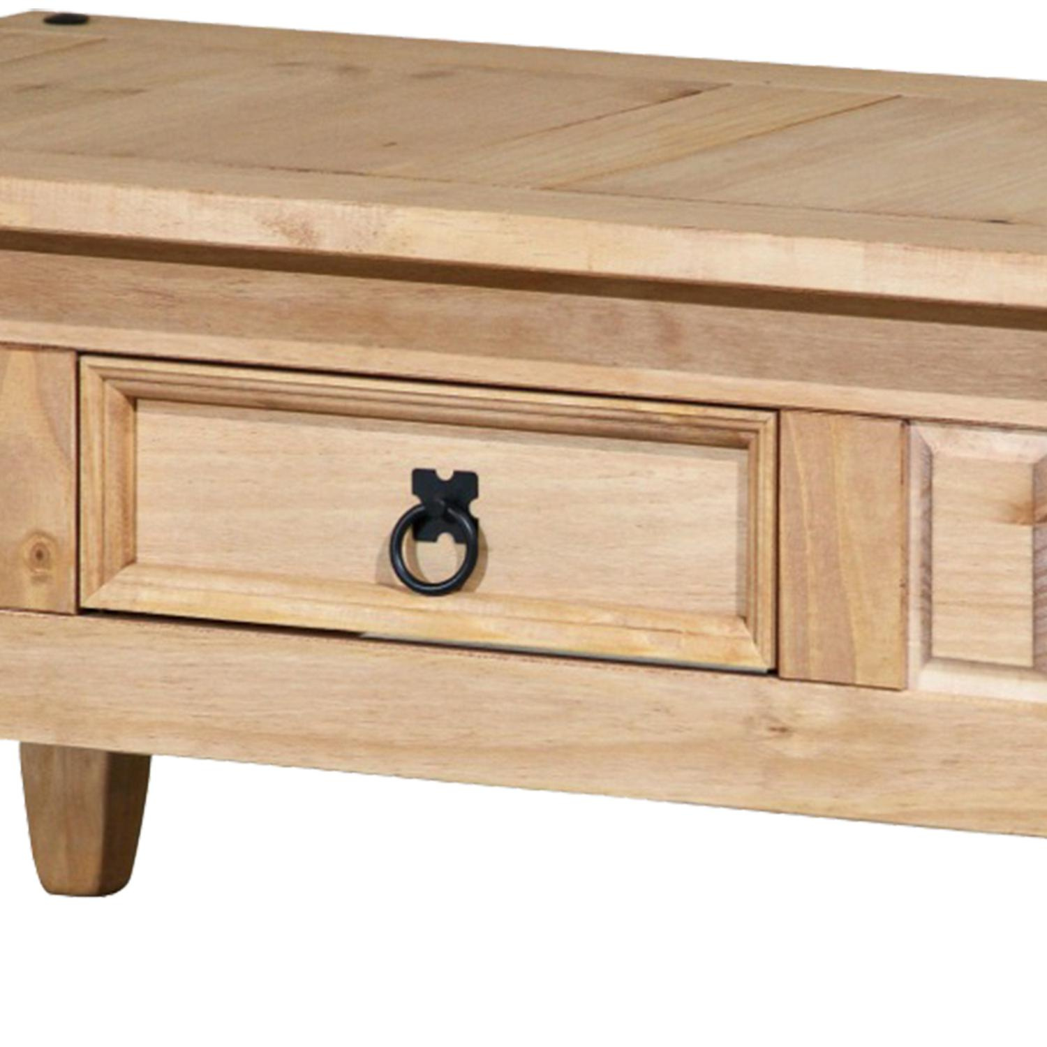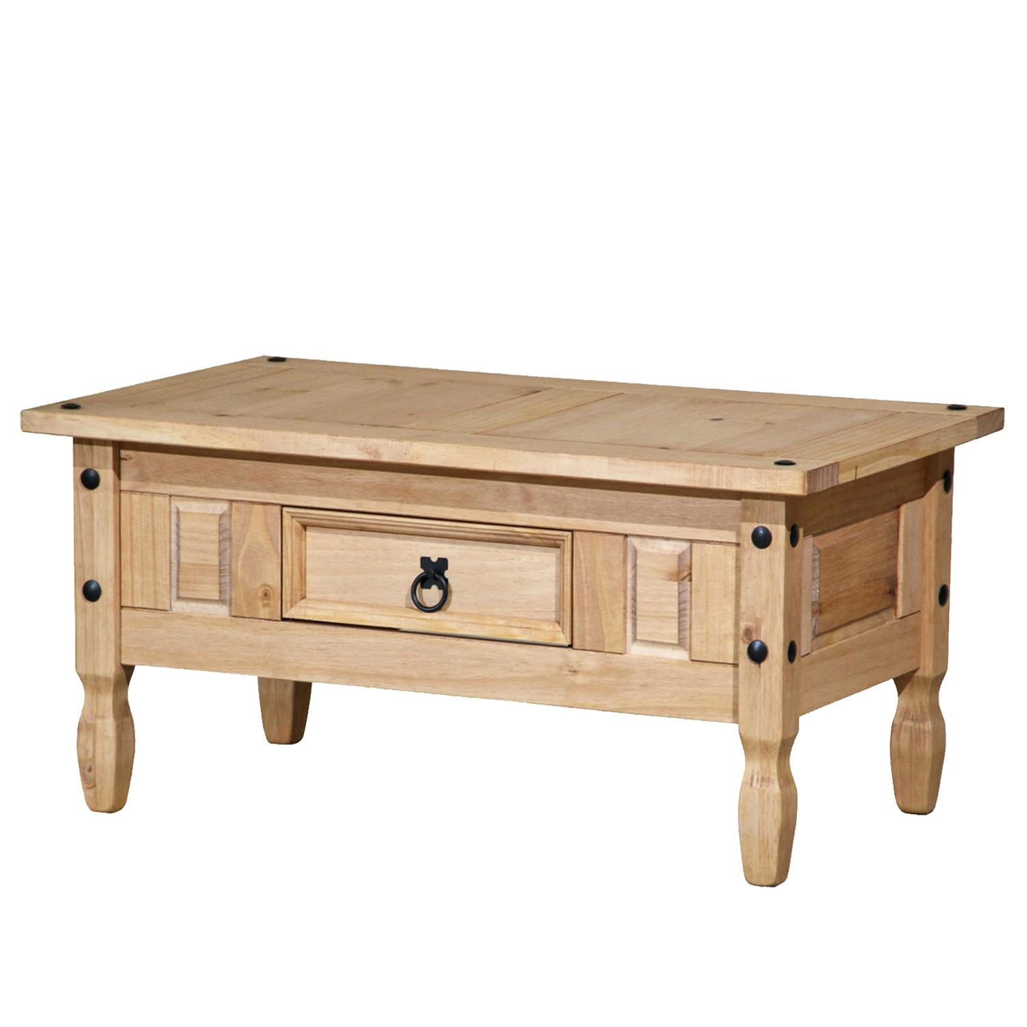 Konferenční stolek je vyroben z masivu borovice, je napuštěný voskem v medovém odstínu. Design stolku připomínající luxusní starožitný nábytek zaujme na první pohled. Konferenční stolek se zásuvkou s ozdobným úchytem a jemnými černými detaily bude středobodem vašeho obývacího pokoje. Je součástí sestavy Corona. Zboží je dodáváno v demontu.