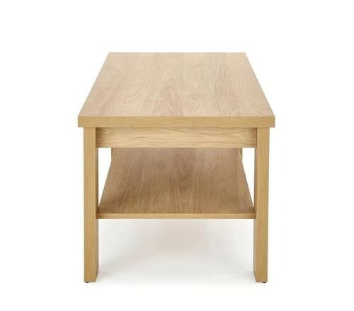 Konferenční stolek Jenna je vyrobený z laminované DTD v barevné variantě přírodní hikora. Stoji na čtyřech nohách a disponuje úložným prostorem v podobě odkládací police. Maximální zatížení stolu 20 kg a police 5 kg. Zboží dodáváme v demontu.