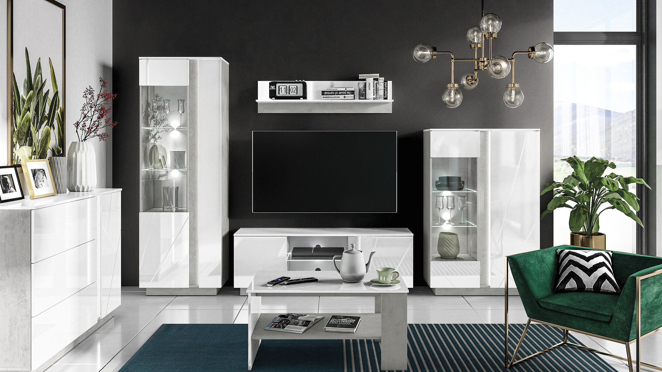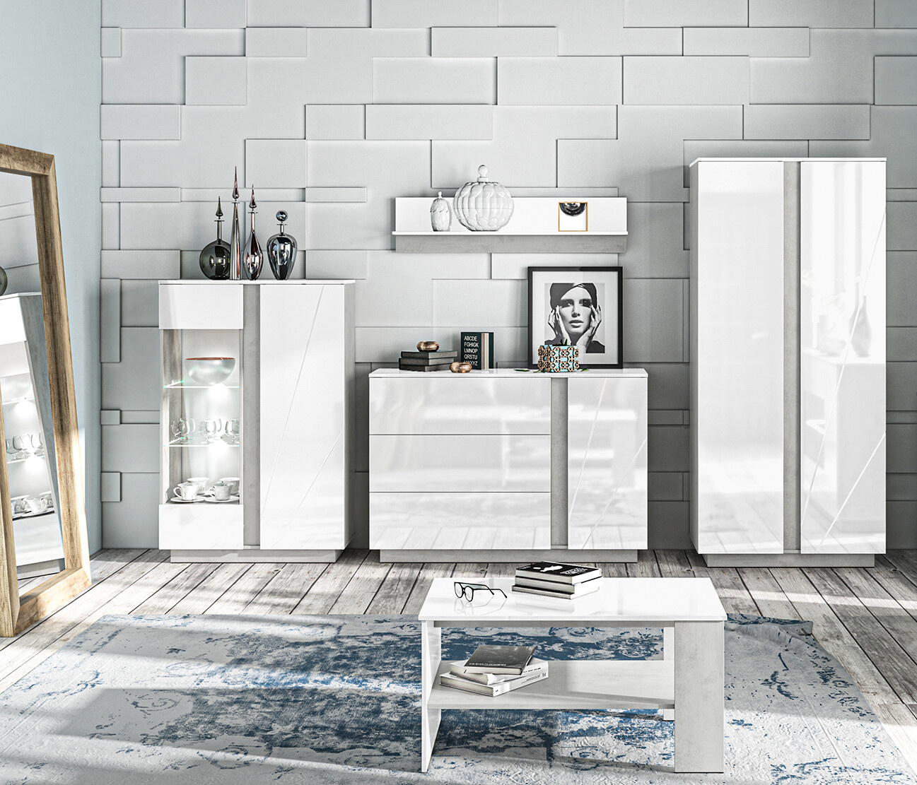 Dokonalá kolekce LUMENS v elegantním stylu je vyrobena z kvalitního lamina s ABS hrany. Konferenční stolek ze sestavy LUMENS je v dezénu bílý lesk/stříbrný beton.  Kolekce LUMENS v elegantním stylu je navržena pro zákazníky, kteří milují moderní design. Zboží dodáváme v demontu.