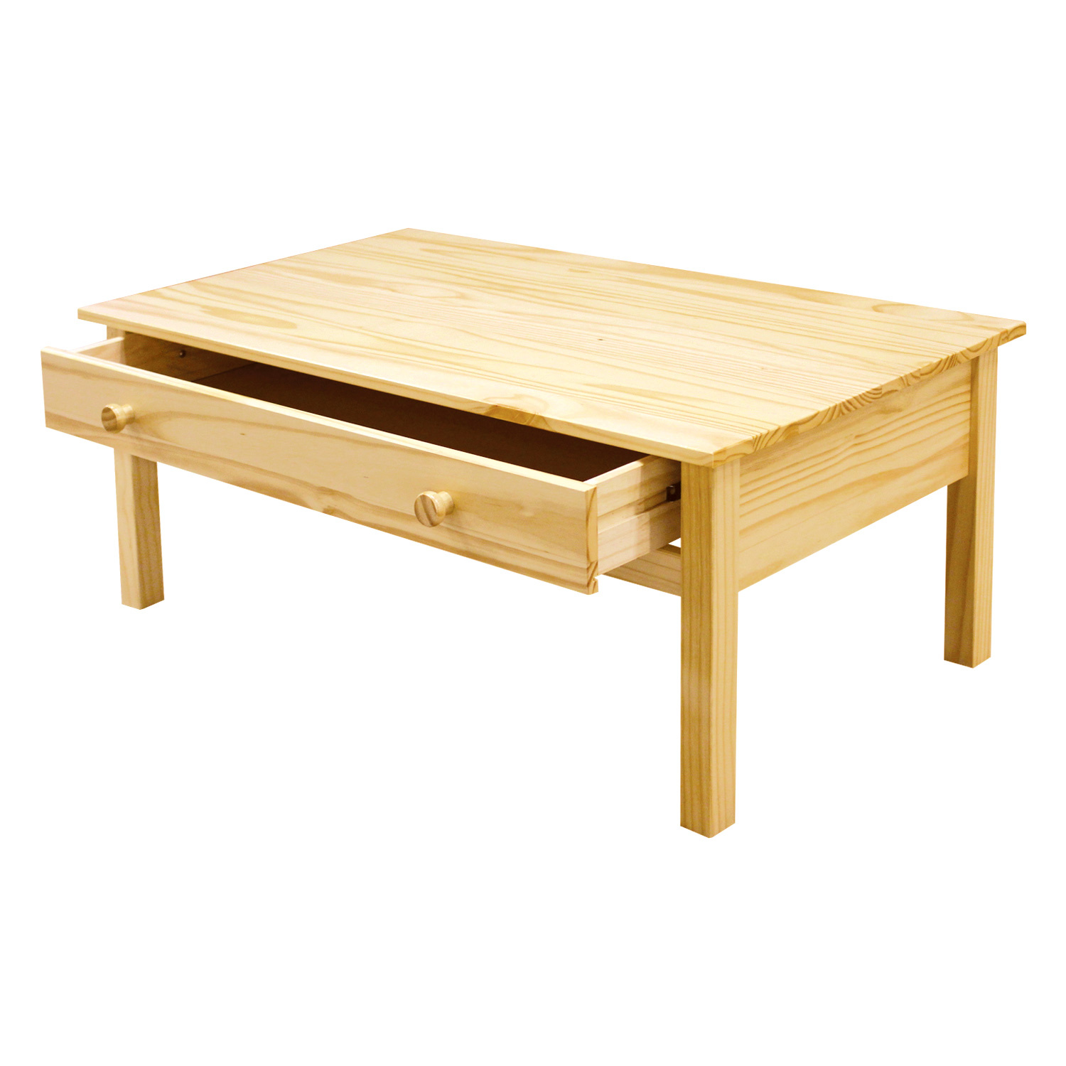 Konferenční stolek je vyroben z masivu borovice, je v lakovaném provedení. Kromě nezbytného místa na pochutiny, nabízí i širokou zásuvku s kovovými pojezdy pro uložení věcí, vaše dálkové ovládání či TV magazín tak budete mít vždy na svém místě. Zboží dodáváme v demontu.