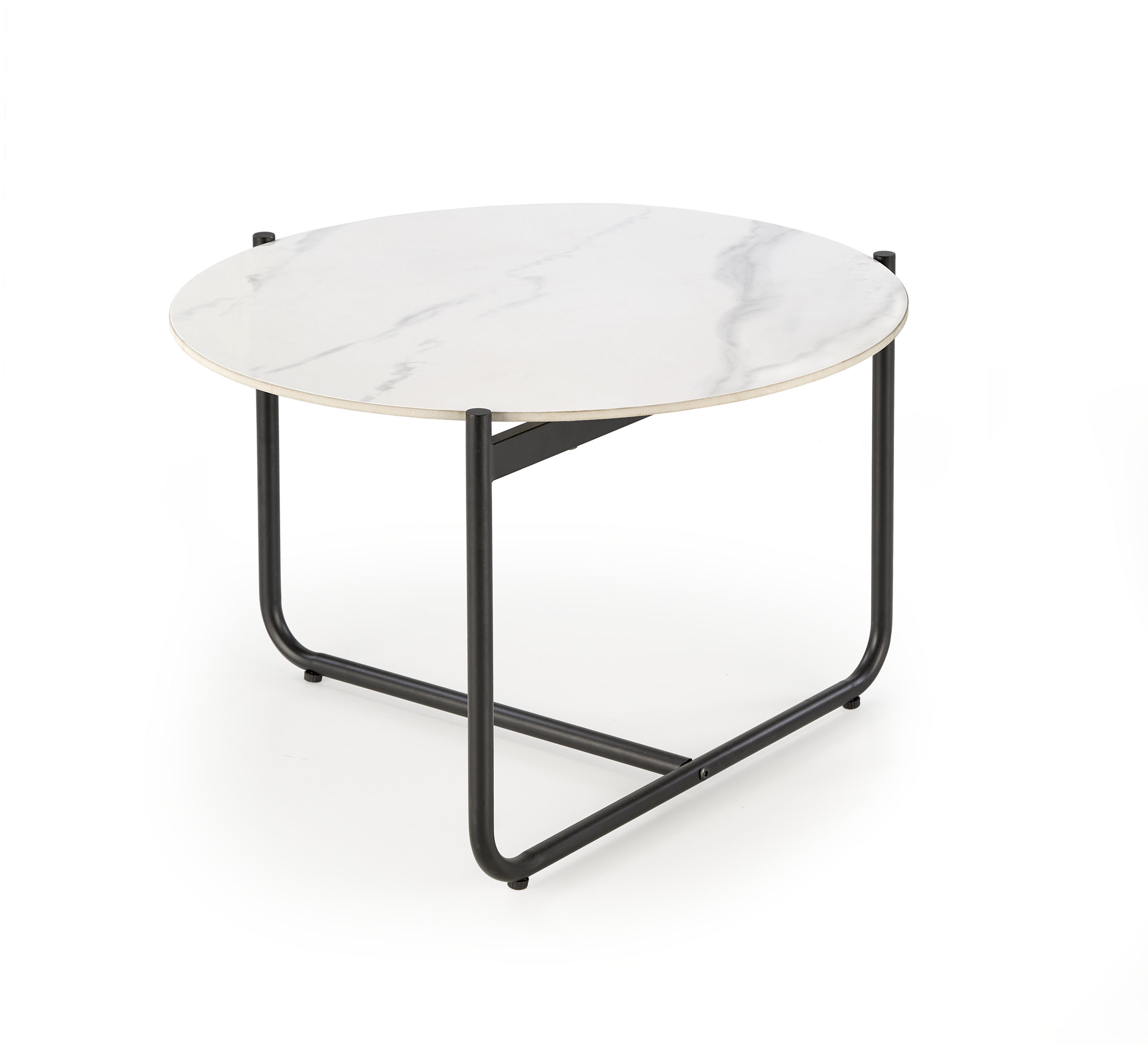 Konferenční stůl je vyroben ze slinutého kamene v dekoru bílého mramoru a práškově lakované černé podnože. Zboží dodáváme v demontu.