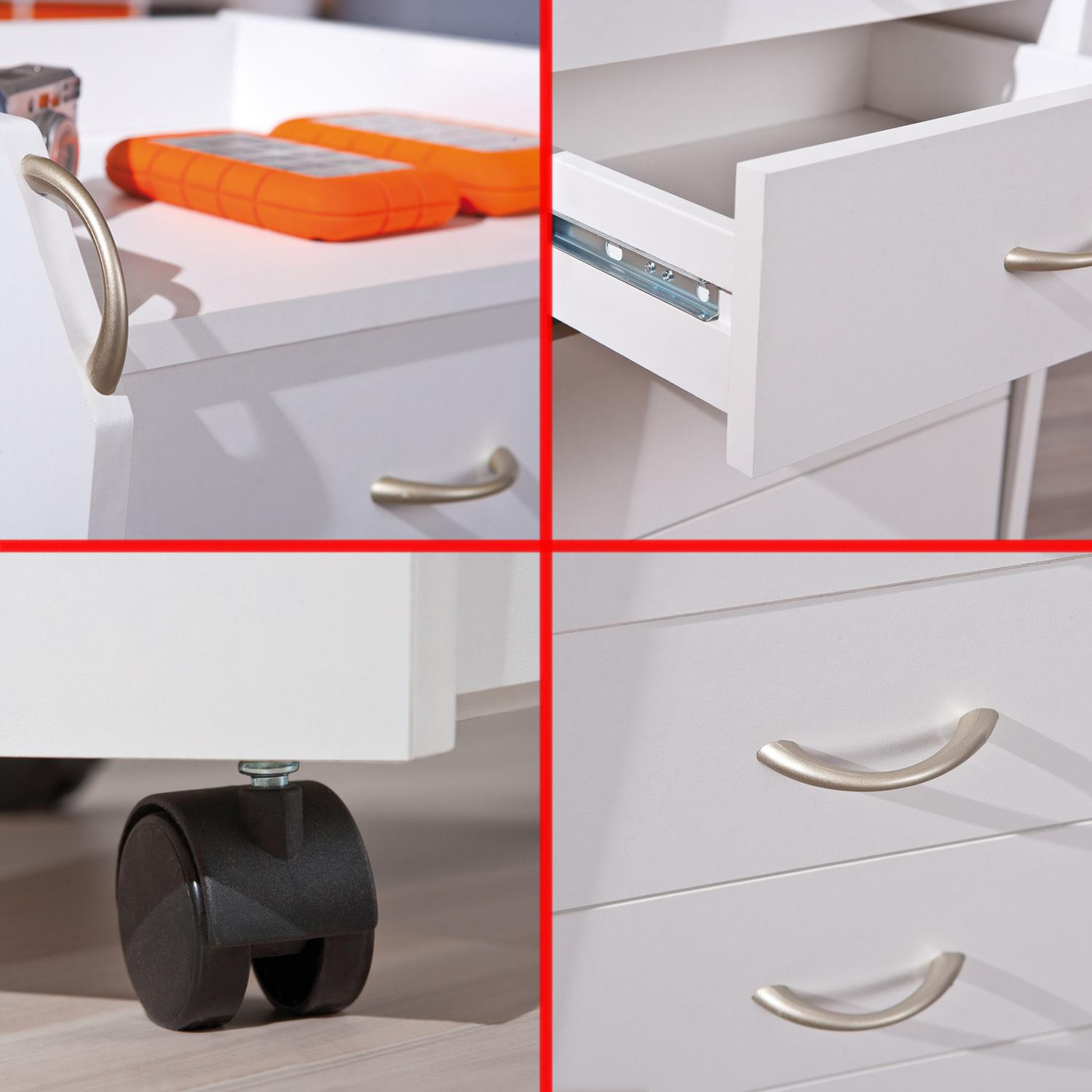 Elegantní bílá barva kontejneru krásně zapadne do pokoje vybaveného právě bílým nábytkem. Kontejner PRONTI lze také postavit vedle lůžka a ukládat do něj rozečtené knihy a časopisy. Kontejner je, díky plastovým kolečkům a úchytům, snadno ovladatelný, hodí se tak i do dětského pokoje. Plocha tohoto kontejneru je šikovně ohraničena, takže už žádné rozsypané pastelky, vylitá voda, barva na koberci či popadané papíry. Zboží dodáváme v demontu.