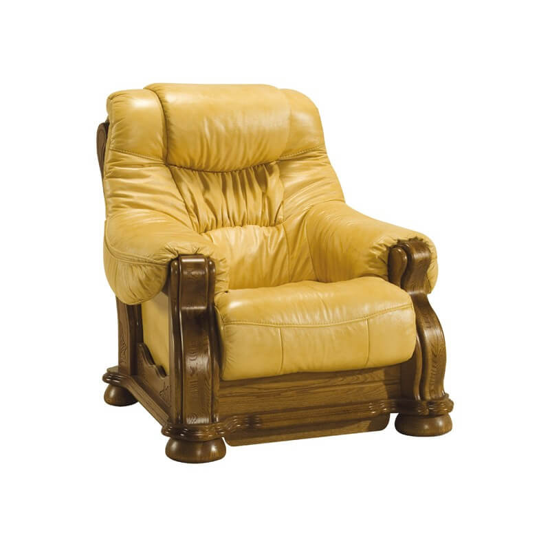 Moderní luxusní křeslo je vyrobeno z pravé hovězí kůže. Kostra je vyrobena z tvrdého dubového dřeva s pevnou konstrukcí. Výplň sedáku je vysoce kvalitní polyuretanová pěna s pružinou bonel. Možnost výběru barvy kůže. Vámi zvolenou variantu barvy kůže i dřeva (dle přiloženého vzorníku) uveďte do objednávky.