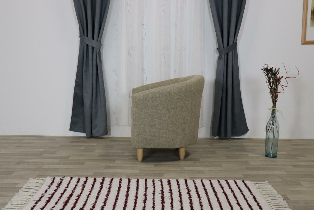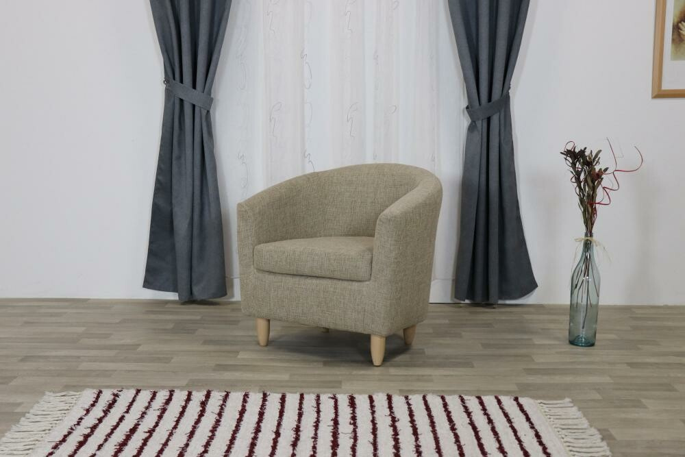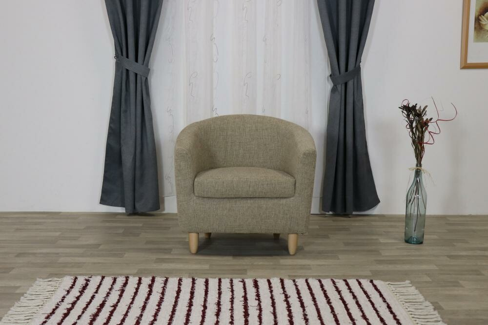 Lehké moderní čalouněné  křeslo s dřevěnými nožkami. Celá vnitřní kostra je vyrobena v kombinaci z masivu a DTD. Sedadlo je tvořeno volným polštářem z kvalitní PUR pěny. Opěradlo je pevně čalouněné z komfortní PUR pěnou. Dřevěné nohy lze vybrat ze čtyř druhů barev: přírodní, olše, středně hnědá a tmavě hnědá. Křeslo je možné objednat v libovolné potahové látce dle nabídky.