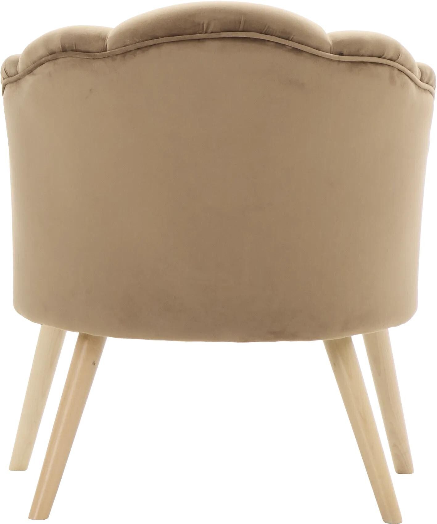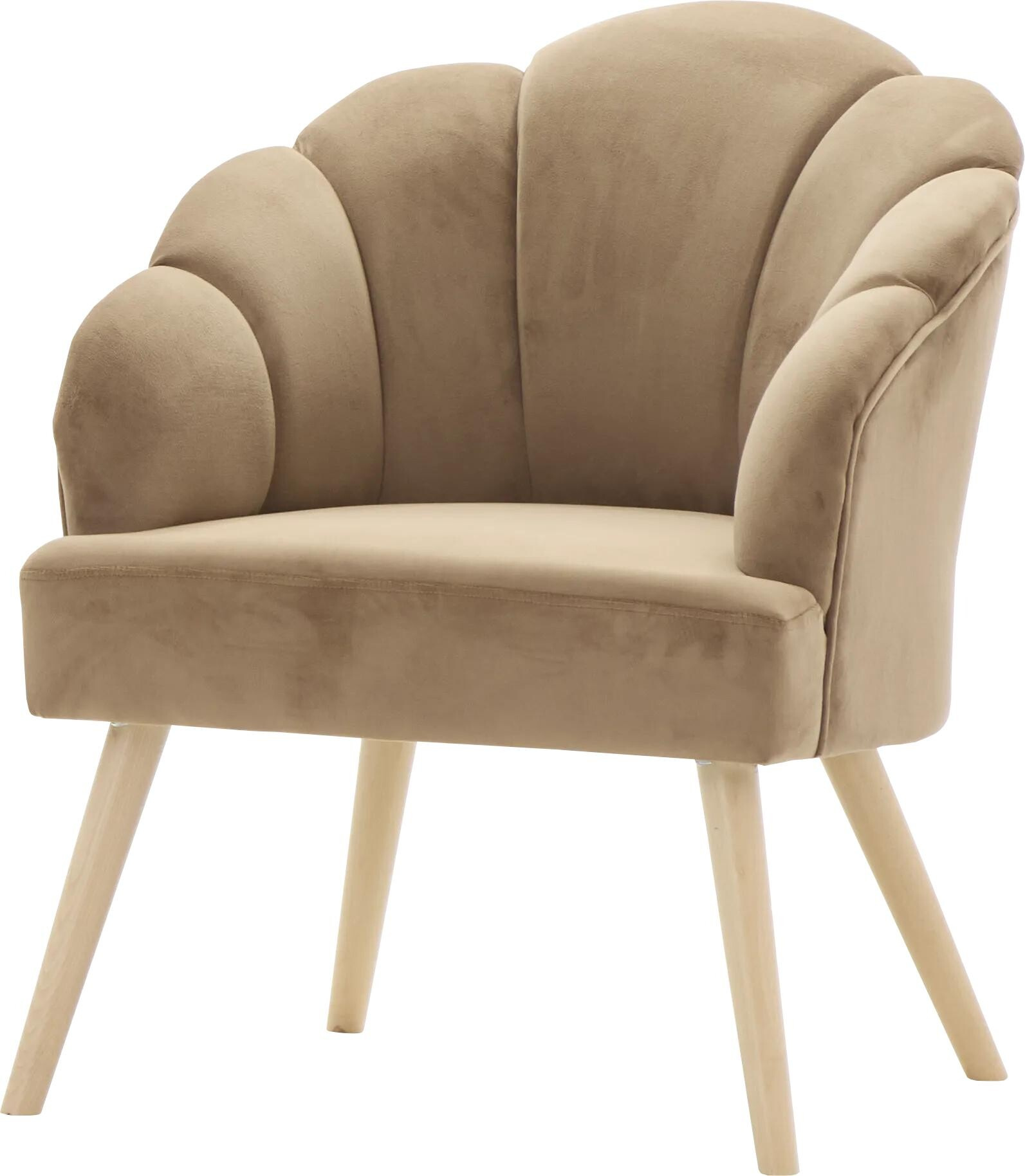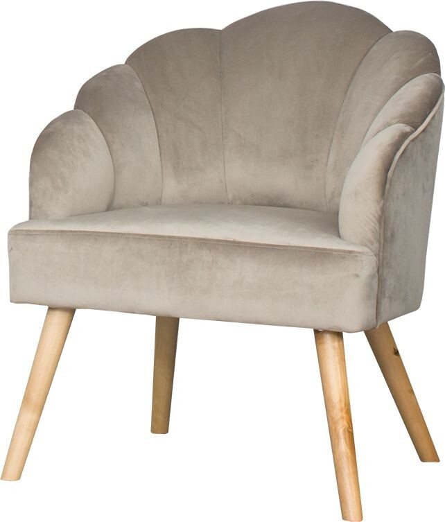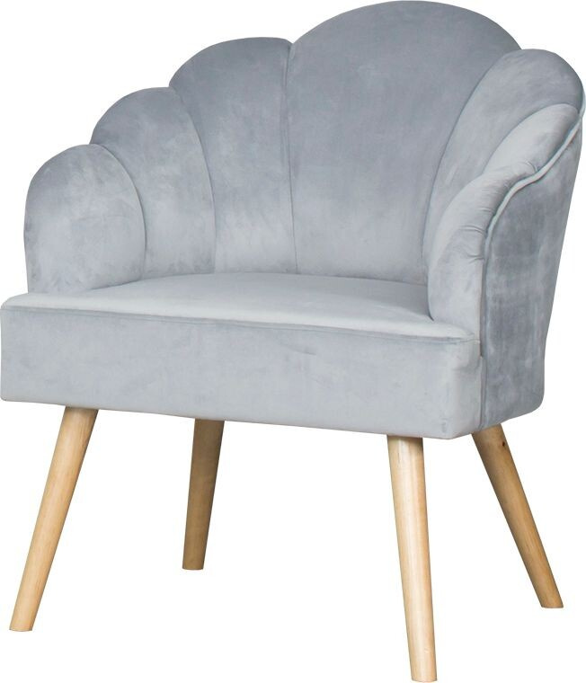 Křeslo Malavi s opěradlem ve tvaru mušle  vyrobené z měkkého plyše v barvě dle výběru. Maximální nosnost křesla je 120 kg.