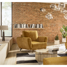 Křeslo Megis v barevném provedení Nube 45 má sedák z vysoce elastické HR pěny. Nohy křesla jsou z černé oceli o výšce 13 cm.