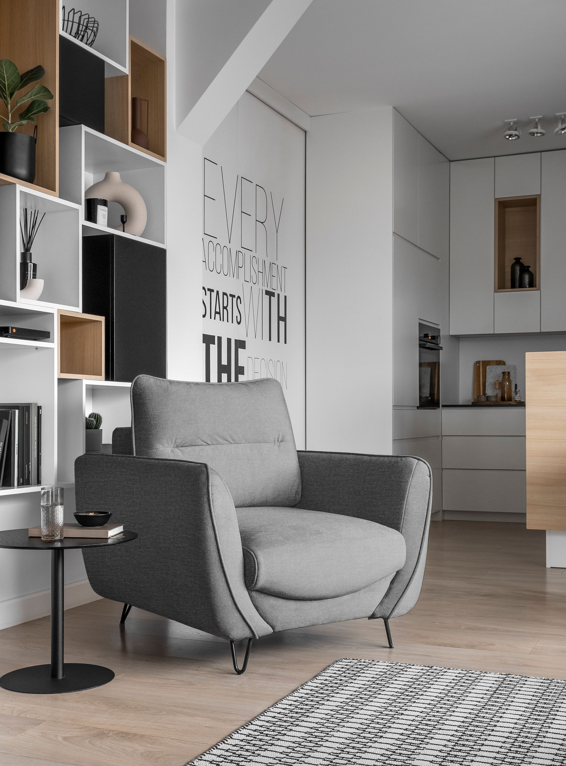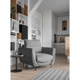 Křeslo Silva v dezénu Nube 3 má sedák vyplněn pěnou HR3040 a vlnitými pružinami typu B. Opěradlo je vyplněno pěnovým granulátem. Nohy křesla jsou vyrobeny z oceli v černé barvě o výšce 13 cm.
