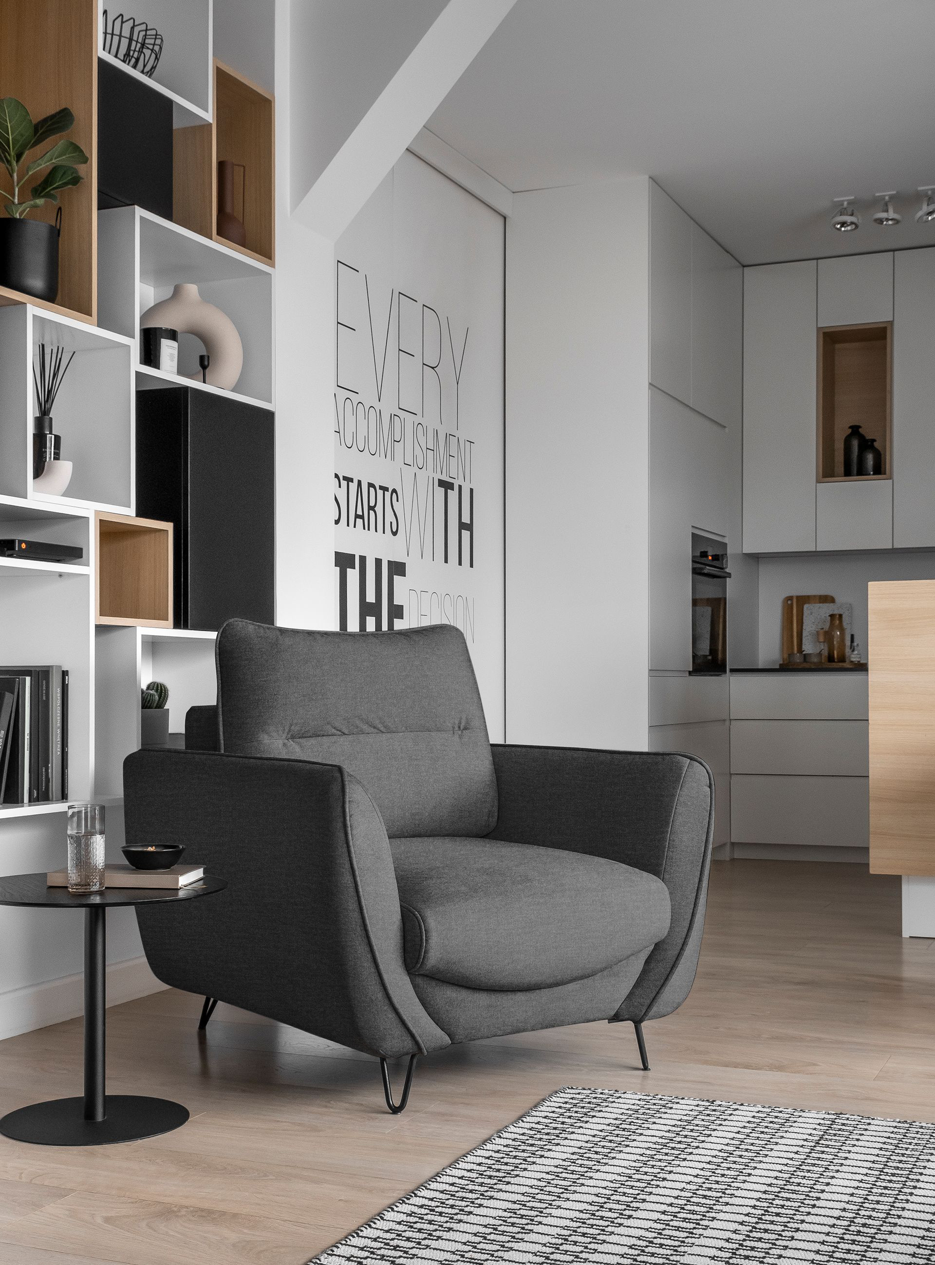 Křeslo Silva v dezénu Nube 6 má sedák vyplněn pěnou HR3040 a vlnitými pružinami typu B. Opěradlo je vyplněno pěnovým granulátem. Nohy křesla jsou vyrobeny z oceli v černé barvě o výšce 13 cm.