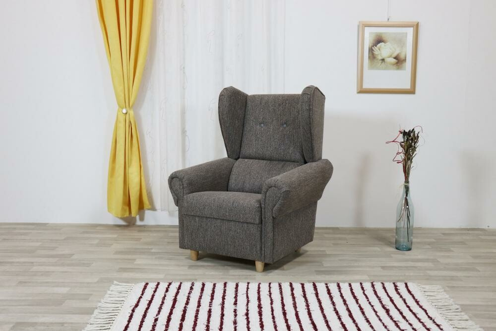 Kostra křesla Tomáš, ušák klasického vzhledu, je tvořena kombinací masivu a velkoplošných materiálů (DTD). Sedadlová plocha je tvořena pružinami (ploché pružiny) a vrstvou kvalitní sedadlové pěny. Tvarované opěradlo má zvýšenou odpruženou bederní podpěru s vrstvami kvalitních pěn. Nohy jsou vyrobeny z masivu a lze vybrat ze čtyř druhů barev: přírodní, olše, světle hnědá a tmavě hnědá.