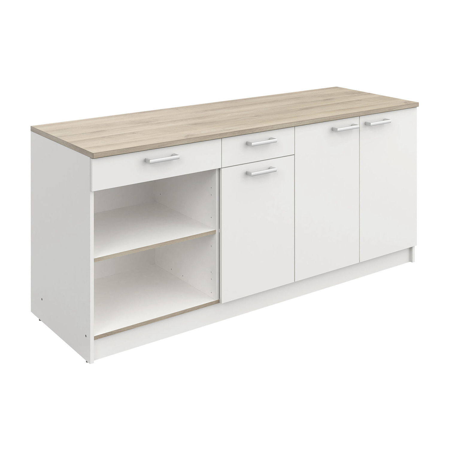 1 x otevřená police: 1 variabilní police, 1 zásuvka s kovovými pojezdy s možností umístění v horní nebo dolní části skříňky, maximální nosnost zásuvky 2 kg, vhodná pro umístění vestavného spotřebiče šířky 60 cm horní desku lze osadit varnou deskou do šířky 60 cm