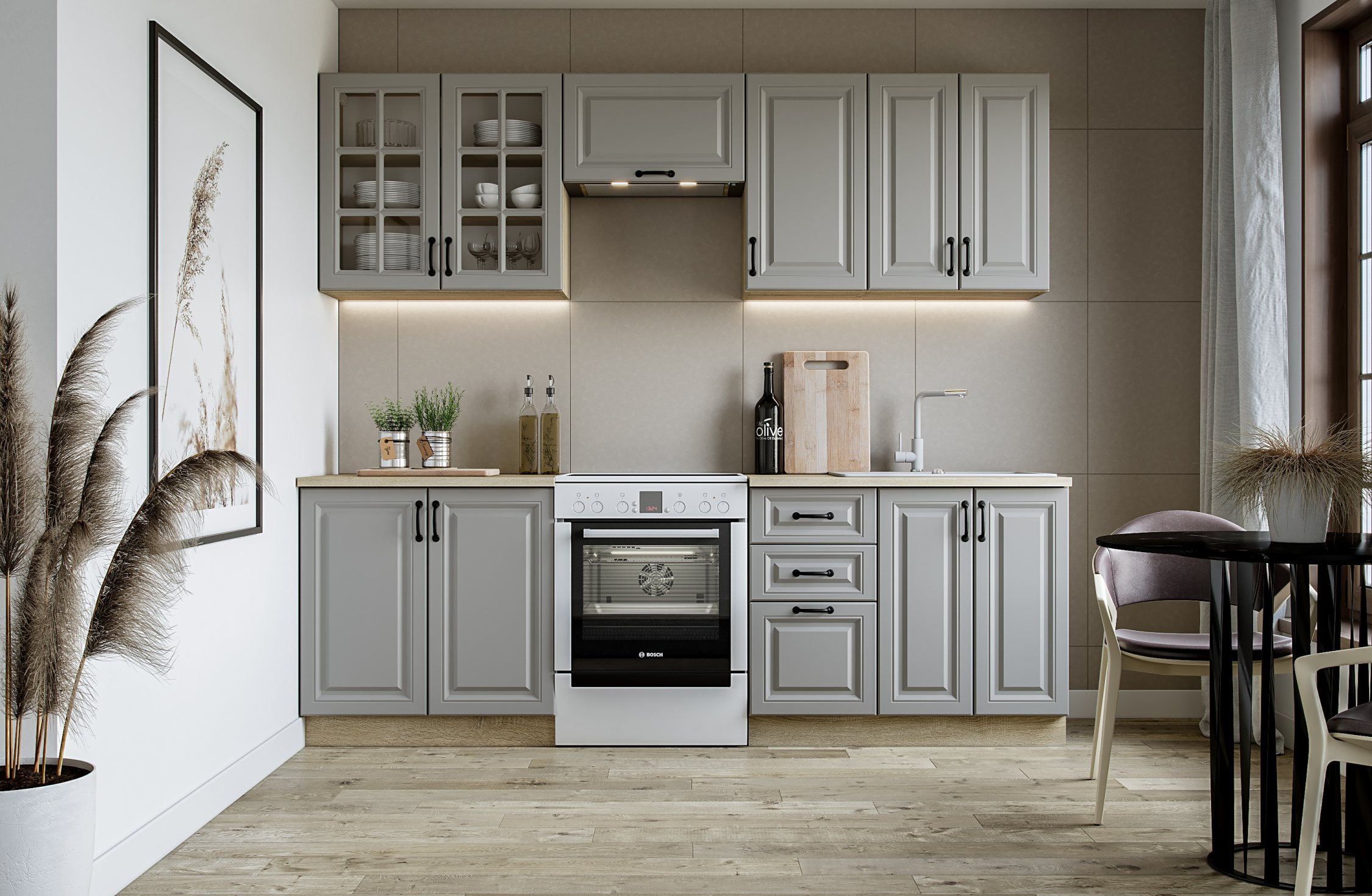 - horní skříňka 80 cm - vitrína, horní skříňka 60 cm - s dvířky, horní skříńka 40 cm - s dvířky, horní skříňka 60 cm - na digestoř