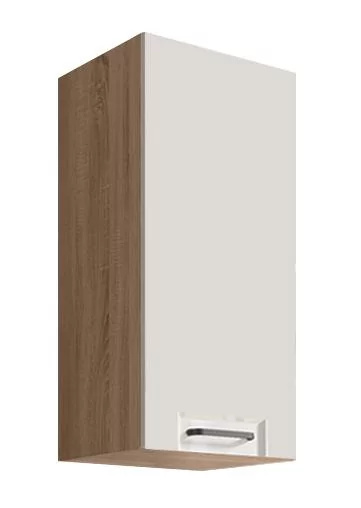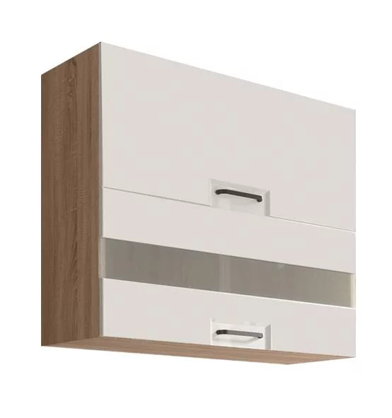 Kuchyňská linka bez pracovní desky je vyrobena z laminované dřevotřísky v barevném provedení: korpus dub sonoma, dvířka bílá lesk. Dovírání v zásuvkách i dveřích je s funkcí tichého dovírání. Dolní skříňky jsou bez pracovní desky a soklu. Zboží dodáváme v demontu.
