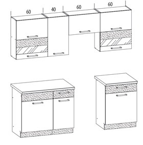 - spodní skříňka 60 cm - dřez, spodní skříňka 40cm, spodní skříňka 60 cm