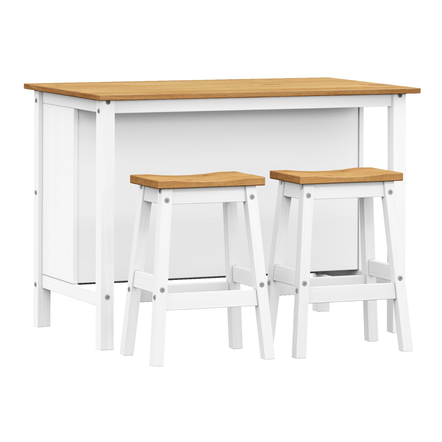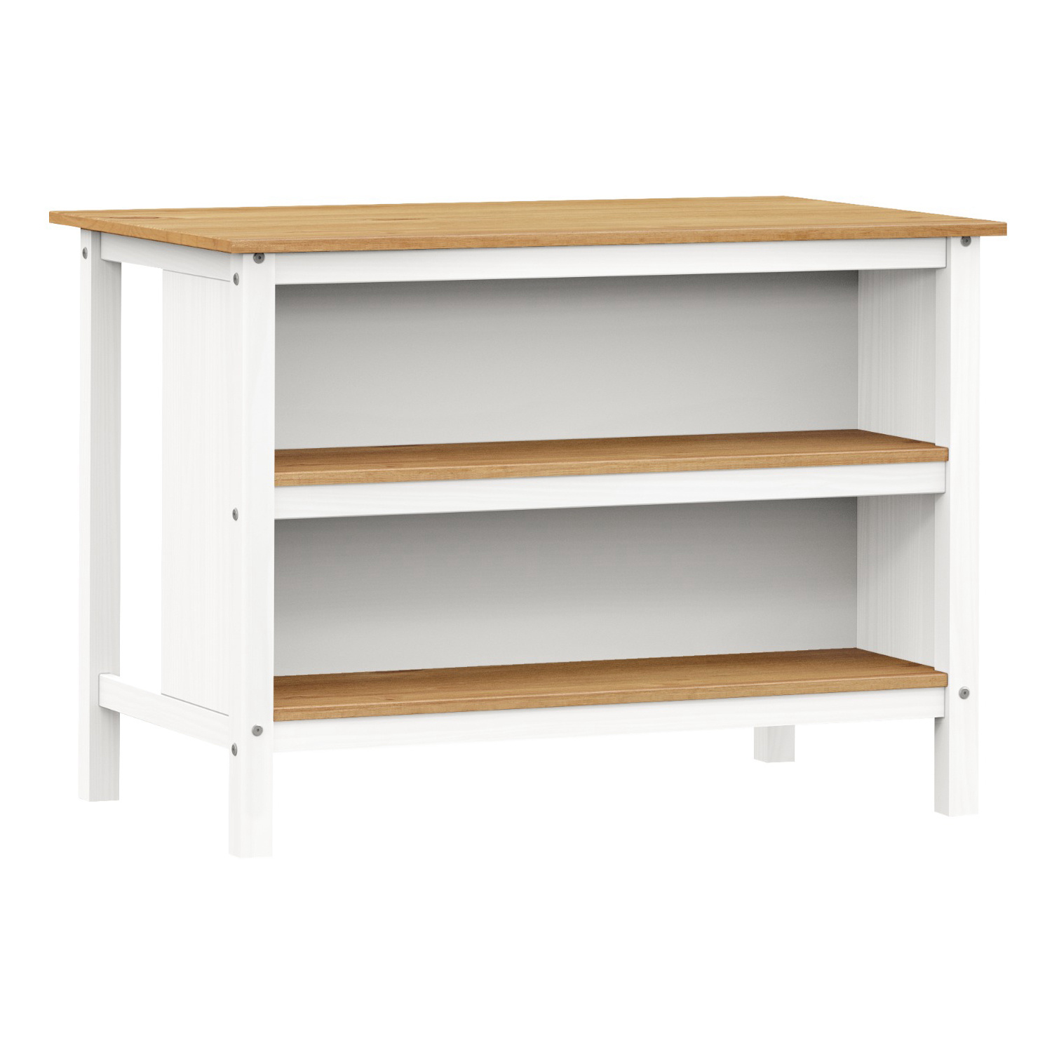 Kuchyňský ostrůvek CORONA 2 je vyroben z materiálu masiv borovice voskovaná v bílém odstínu horní deska a police voskovaná v medovém odstínu. Zboží dodáváme v demontu.