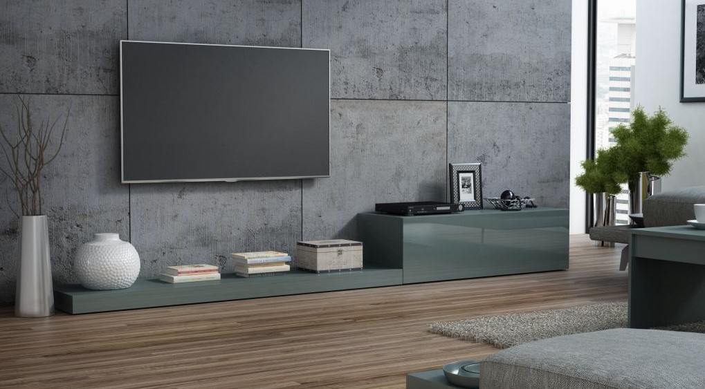 Moderní TV stolek LIFE je vyroben korpus z kvalitního lamina 16 mm, dvířka z MDF 16 mm ve vysokém lesku v šedé barvě. Stolek se skládá ze skříňky (š/h/v: 120x42x35) a podesty (š/h/v: 180x42x8). Zboží je dodáváno v demontu.
