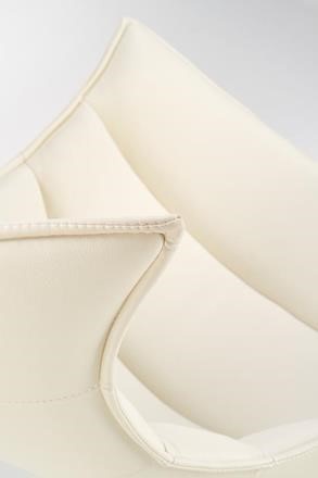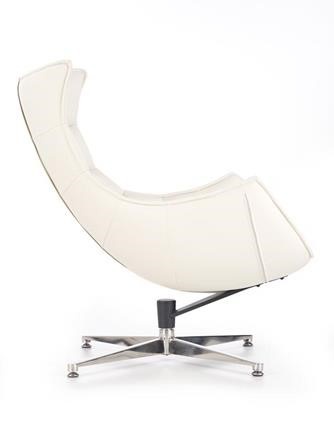 Čalouněné křeslo je vyrobeno v kombinaci materiálů přírodí kompozitní kůže v barvě bílá a nerezová ocel. Křeslo je vhodné k odpočinku a relaxaci. Nosnost max.120 kg.