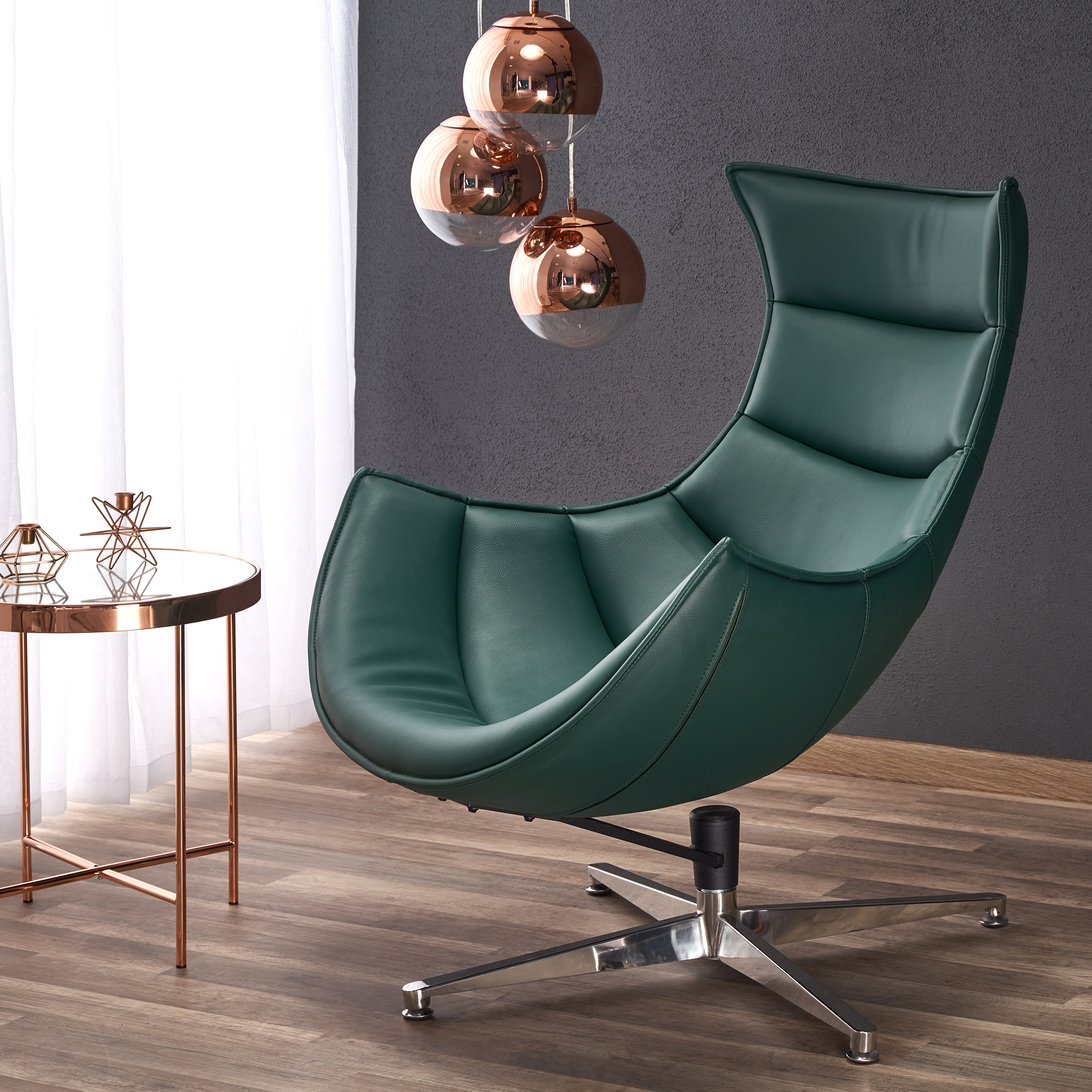 Čalouněné křeslo je vyrobeno v kombinaci materiálů přírodí kompozitní kůže v barvě zelená a nerezová ocel. Křeslo je vhodné k odpočinku a relaxaci. Nosnost max.120 kg.