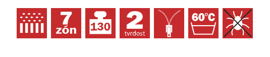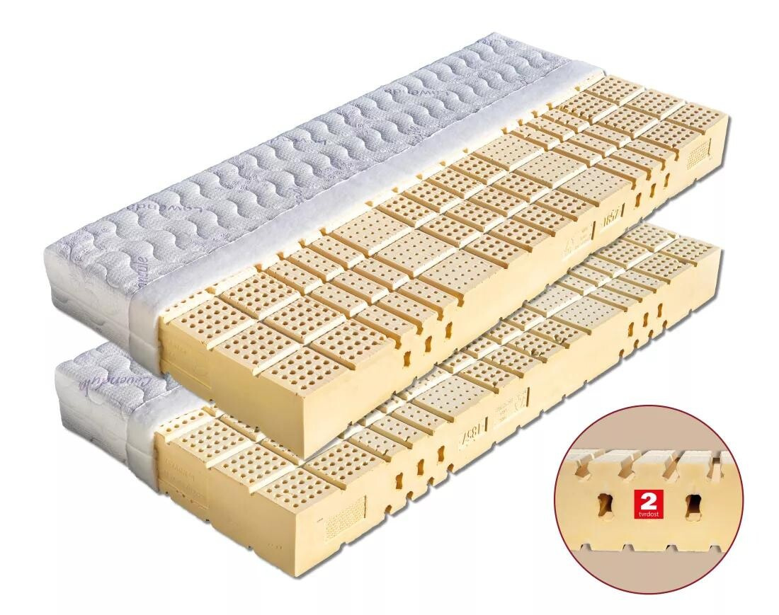 Latexová matrace vyrobená ze 100 % přírodního latexu. Odolné přírodní latexové jádro s vysokou hustotou 75 kg/m³ zaručuje dlouhodobou životnost matrace. Větrací otvory zajišťují optimální cirkulaci vzduchu a efektivně odvádějí vlhkost. Udržují v matraci tzv. suché klima eliminující mikroorganismy. Matrace je vhodná na všechny typy roštů. Výborně se tvaruje, takže ji oceníte u polohovatelných roštů. Matrace lze vybrat v potahu SILVERGUARD,MEDICOTT,LYOCELL - antibakteriální potah nebo LEVANDULE - s relaxačními účinky. V objednávce prosím uveďte Vámi vybraný potah. Celková výška matrace cca 19 cm. Nosnost matrace 130 kg.