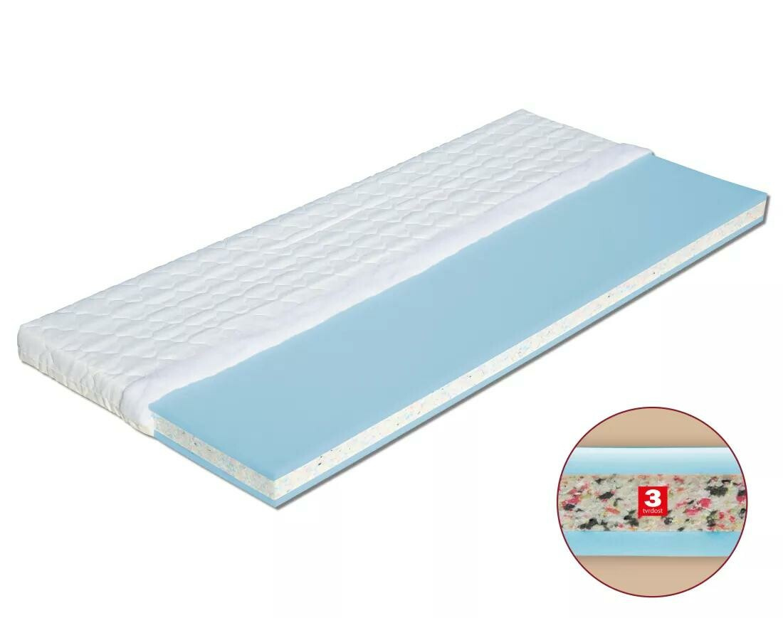 Polyuretanová matrace zpevněná pojeným polyuretanem (PUR RE 80), který zaručuje vyšší pevnost matrace, dobrou pružnost a ohebnost. Je vhodná k příležitostnému i stálému spánku. Matrace lze vybrat v potahu SILVERGUARD,MEDICOTT,LYOCELL - antibakteriální potah nebo LEVANDULE - s relaxačními účinky. V objednávce prosím uveďte Vámi vybraný potah. Výška matrace včetně potahu 12 cm. Matrace do hmotnosti 90 kg.