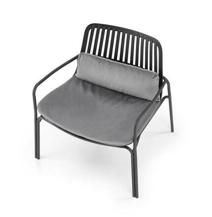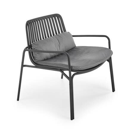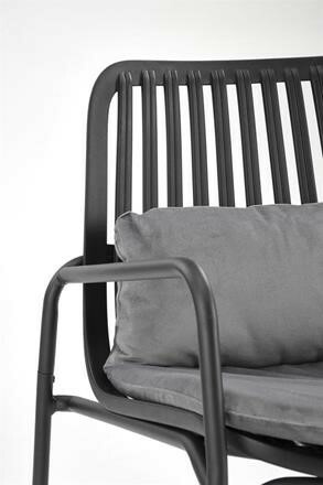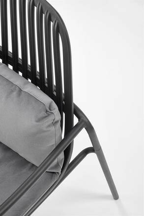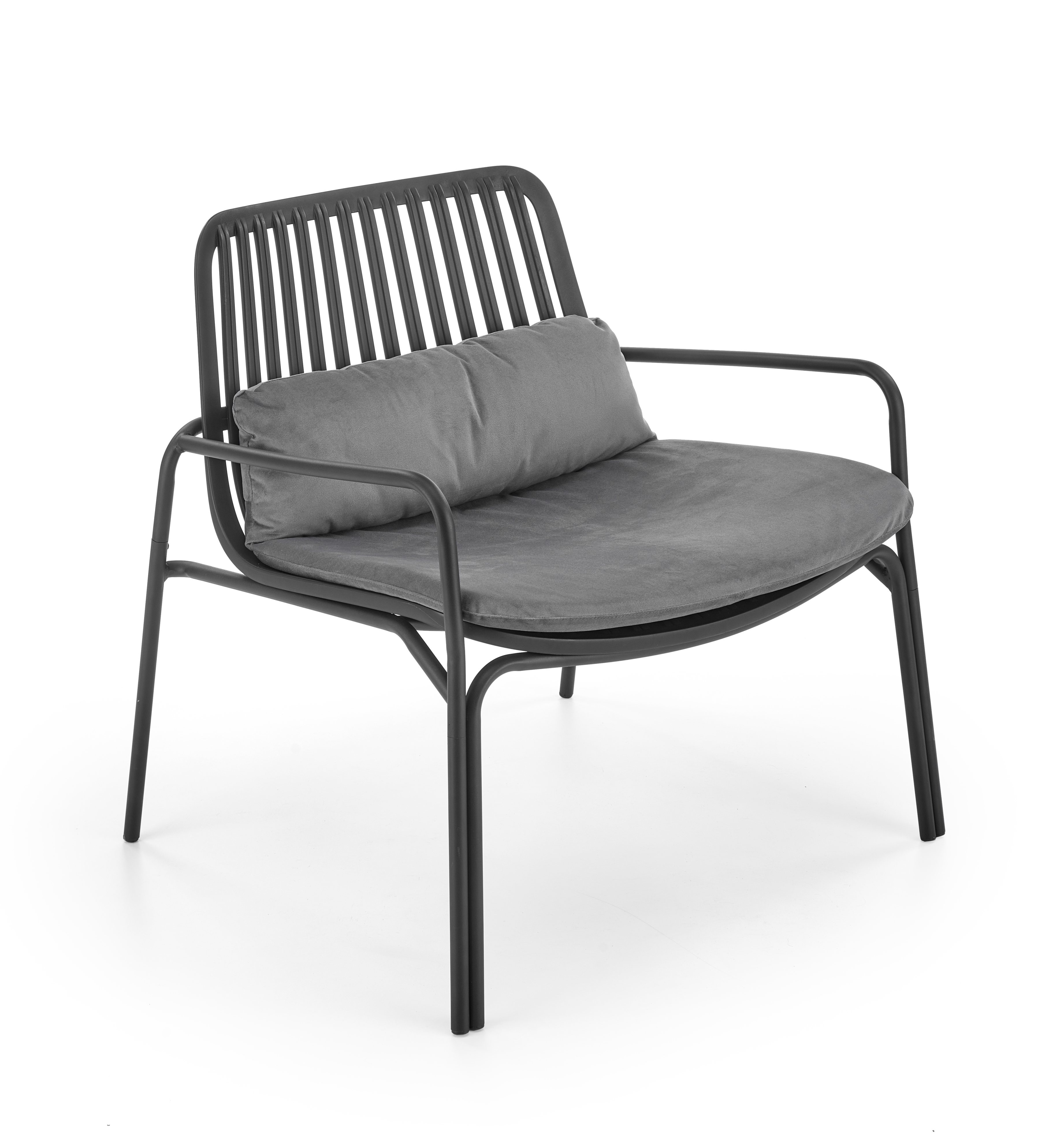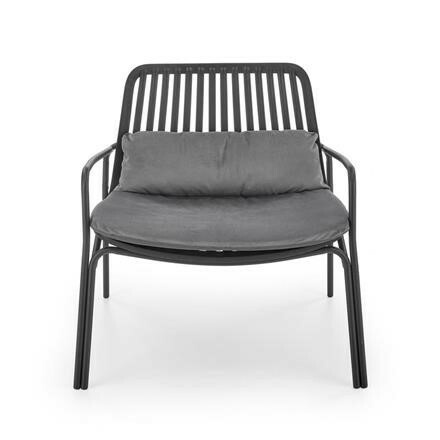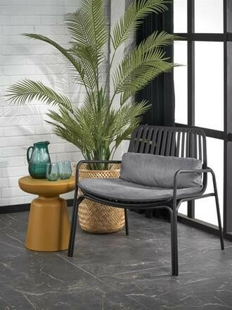 Kovová konstrukce židle Melby nese sedák z plastu , obojí v černém provedení. Pro pohodlí poslouží nejen područky, ale také snímatelný podsedák potažený sametově hebkou látkou v šedé barvě. Maximální nostnost 100 kg. Zboží dodáváme v demontu.