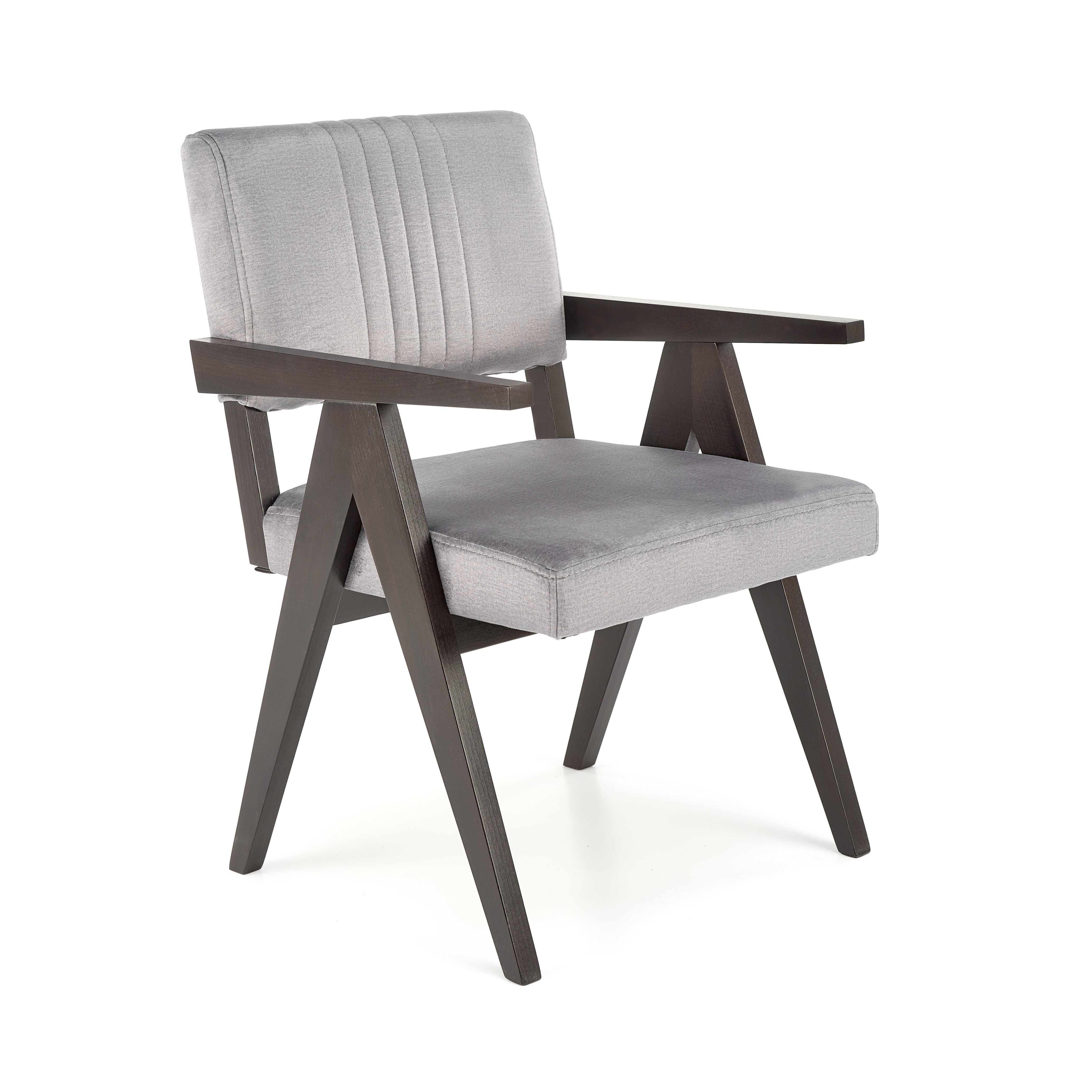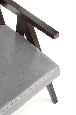 Křeslo Memory disponuje elegantním rámem z masivu a buku v barvě eben a krásným čalouněním z luxusní sametové látky šedé barvy( Monolith 85).