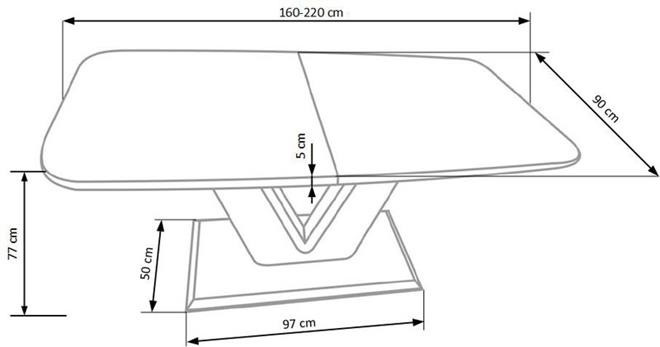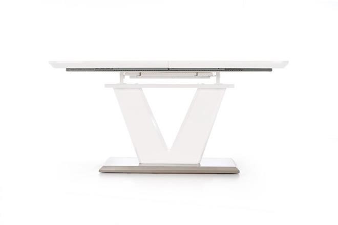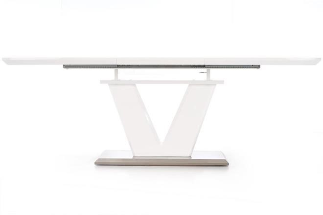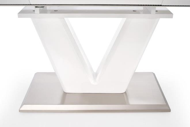 Jídelní stůl vás zaujme svým elegantním a zajímavým designem. Tento jídelní stůl se hodí do domácností, kaváren, restaurací, ale jistě jej oceníte rovněž v hotelech. Deska stolu je z lakovaného MDF v bílém lesku. Desku nese noha z lakovaného MDF a nerezové ocele. Součástí nohy je podstavec. Velkou výhodou je nastavitelná délka desky stolu. Desku jídelního stolu lze prodloužit až na 220 cm. Náš jídelní stůl bude báječně pasovat do jakéhokoliv interiéru. Dodáváme v demontu.