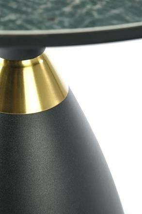 Konferenční stolek Morena má desku stolu vyrobenou z kvalitní keramiky v dezénu zelený mramor a nohu z práškově lakované oceli v černé barvě se zlatým prvkem. Zboží dodáváme v demontu.