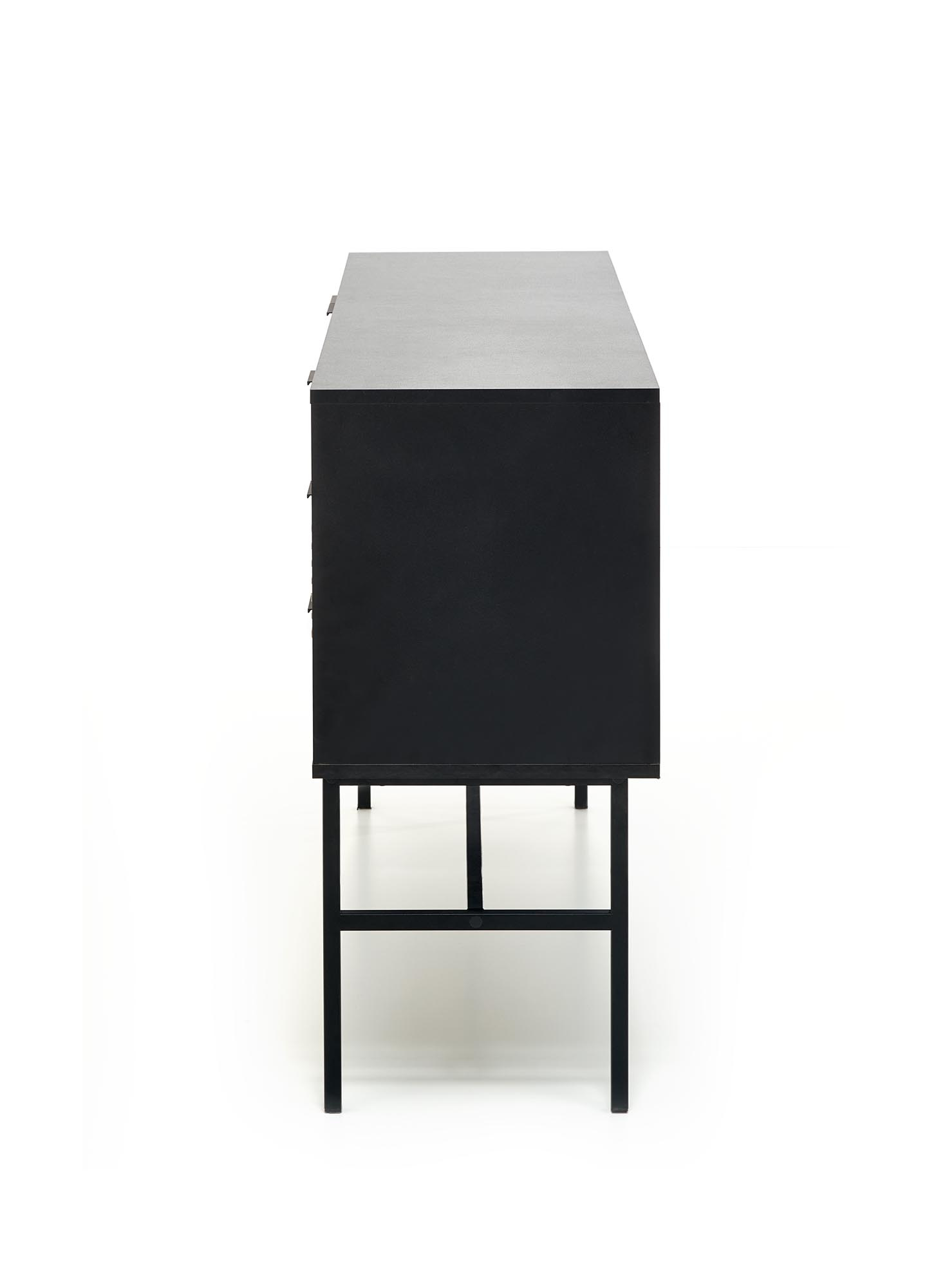 Komoda vyrobená z materiálu dýhovaná MDF/dýhovaná nábytková deska v barevném provedení dub artisan/černá. Nohy stolku z práškované lakované oceli v barevném provedení černá. Zboží dodáváme v demontu.