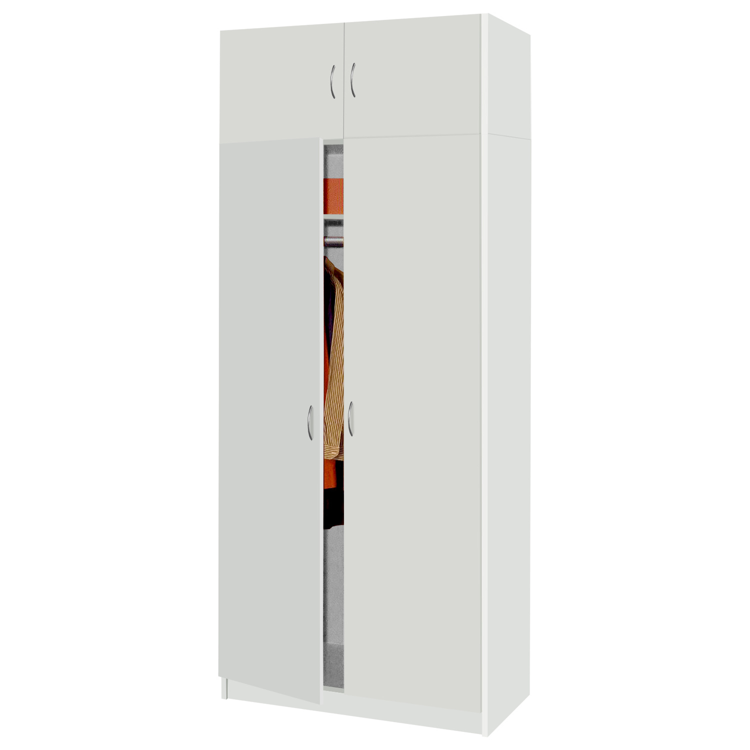 Nástavec na šatní skříň je vyroben z laminované dřevotřísky v barevném provedení bílá. Nástavec je určen pro skrin 216. Zboží dodáváme v demontu.