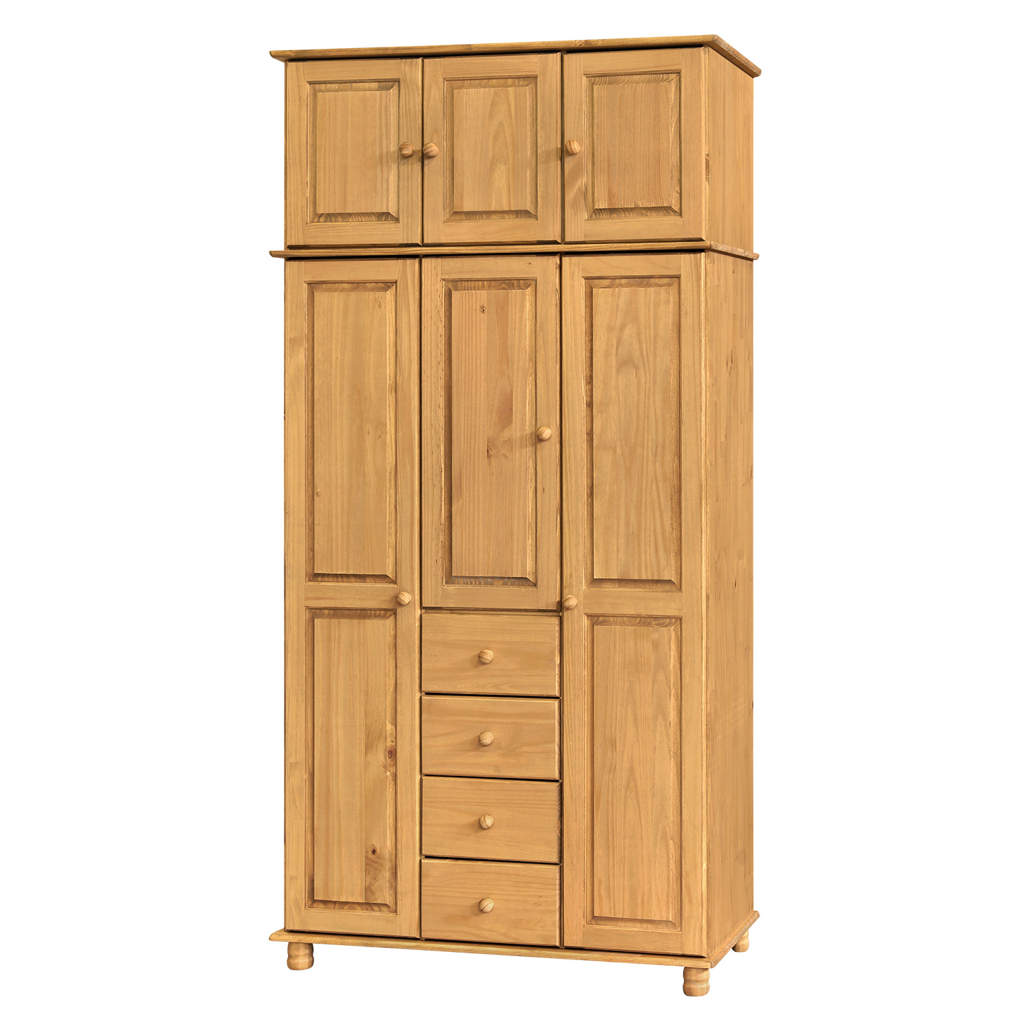 Nástavec z materiálu masiv borovice v barevném provedení vosk. Nástavec je vhodný k 3dveřové skříni 8851V a 8863V. Zboží dodáváme v demontu.
