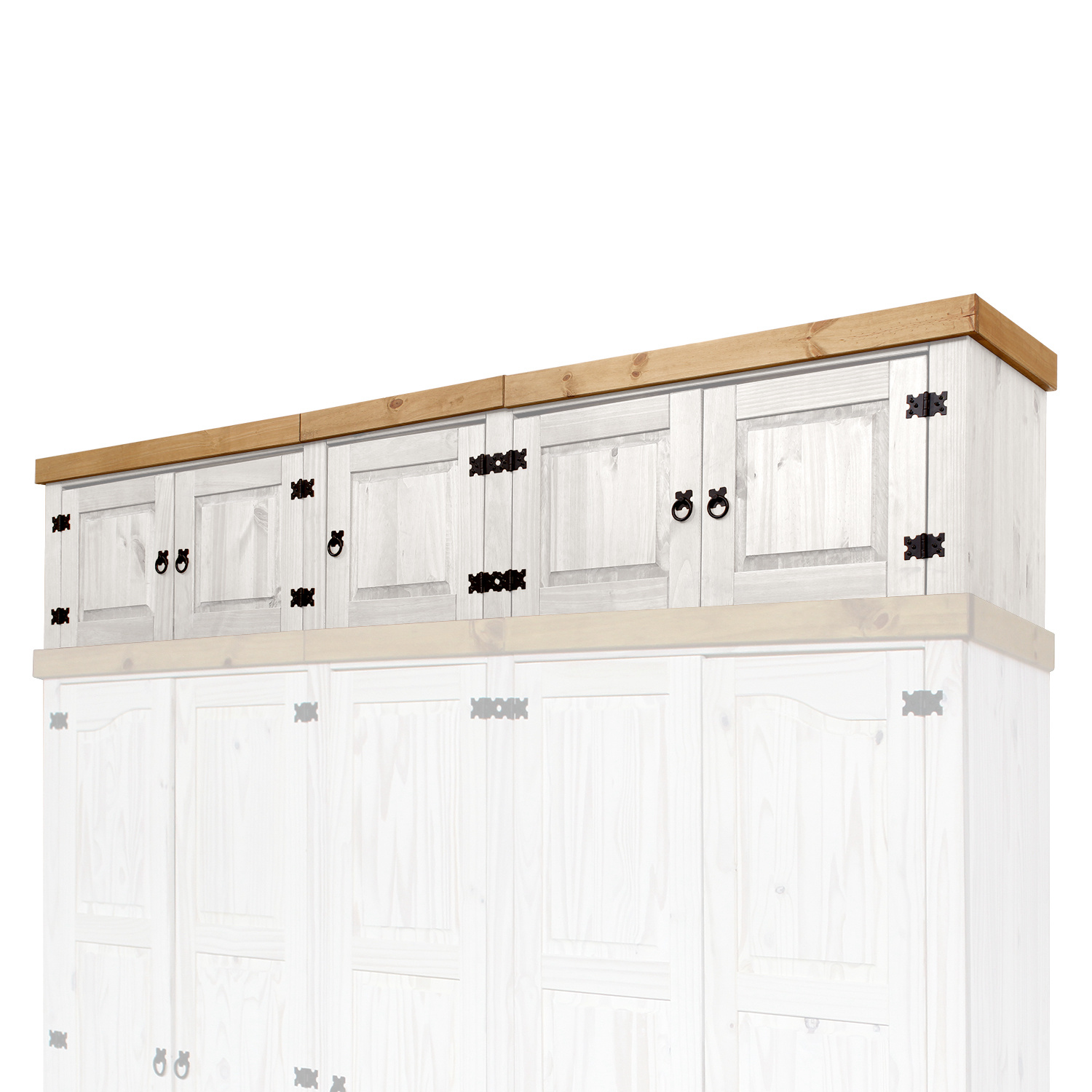 materiál masiv borovice voskovaná v bílém odstínu horní lem masiv borovice voskovaná v medovém odstínu nástavec pro skříň 162819B součást sestavy Corona bílá