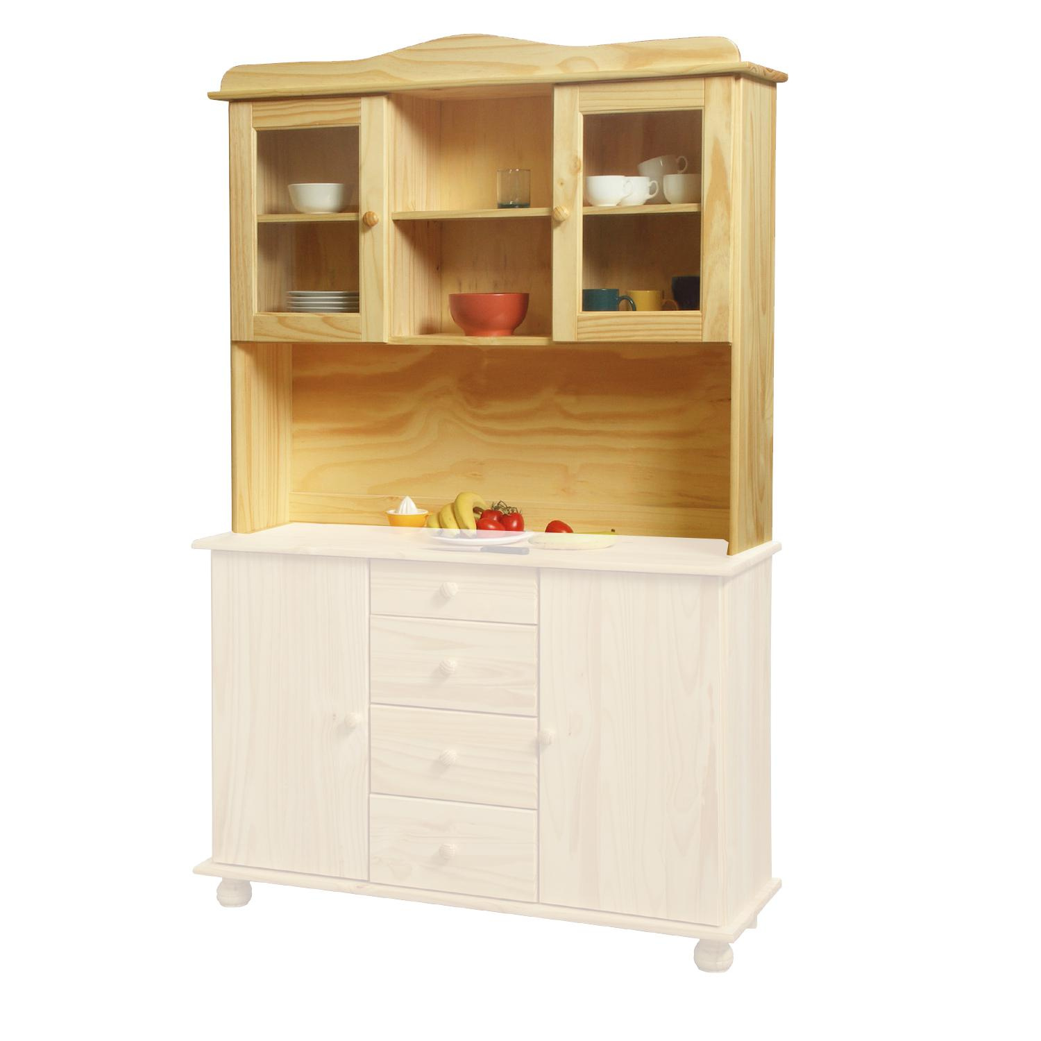 Nástavec příborníku 8046 v provedení masiv borovice je doplňkem příborníku 8045. Originálně tvarovaný nástavec vystaví věci, které musíte mít při vaření a následném stolování po ruce. Do masivního nástavce příborníku na pevné police umístíte hrnečky, porcelán, kořenky a solničku. Nástavec obsahuje dvoje prosklená dvířka, prostřední prostor je pak volný. Zboží je dodáváno v demontu.