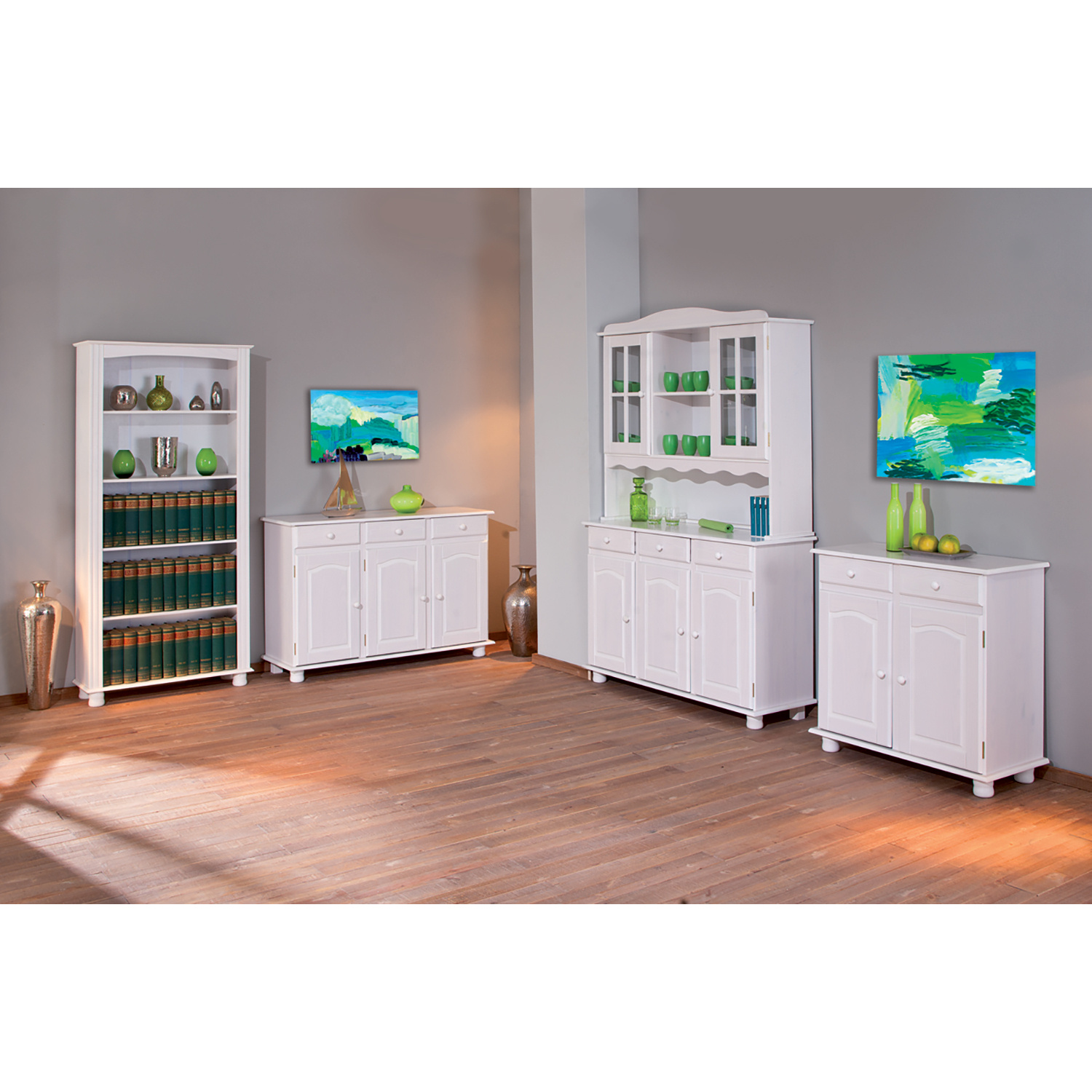 materiál masiv borovice, barevné provedení bílý lak dvoje prosklená dvířka doplněk příborníku LIVIO PAMINA, LOVI, ABACO, LIVIO, ALICANTE, VALENCIA, TOSCANA, SIENA