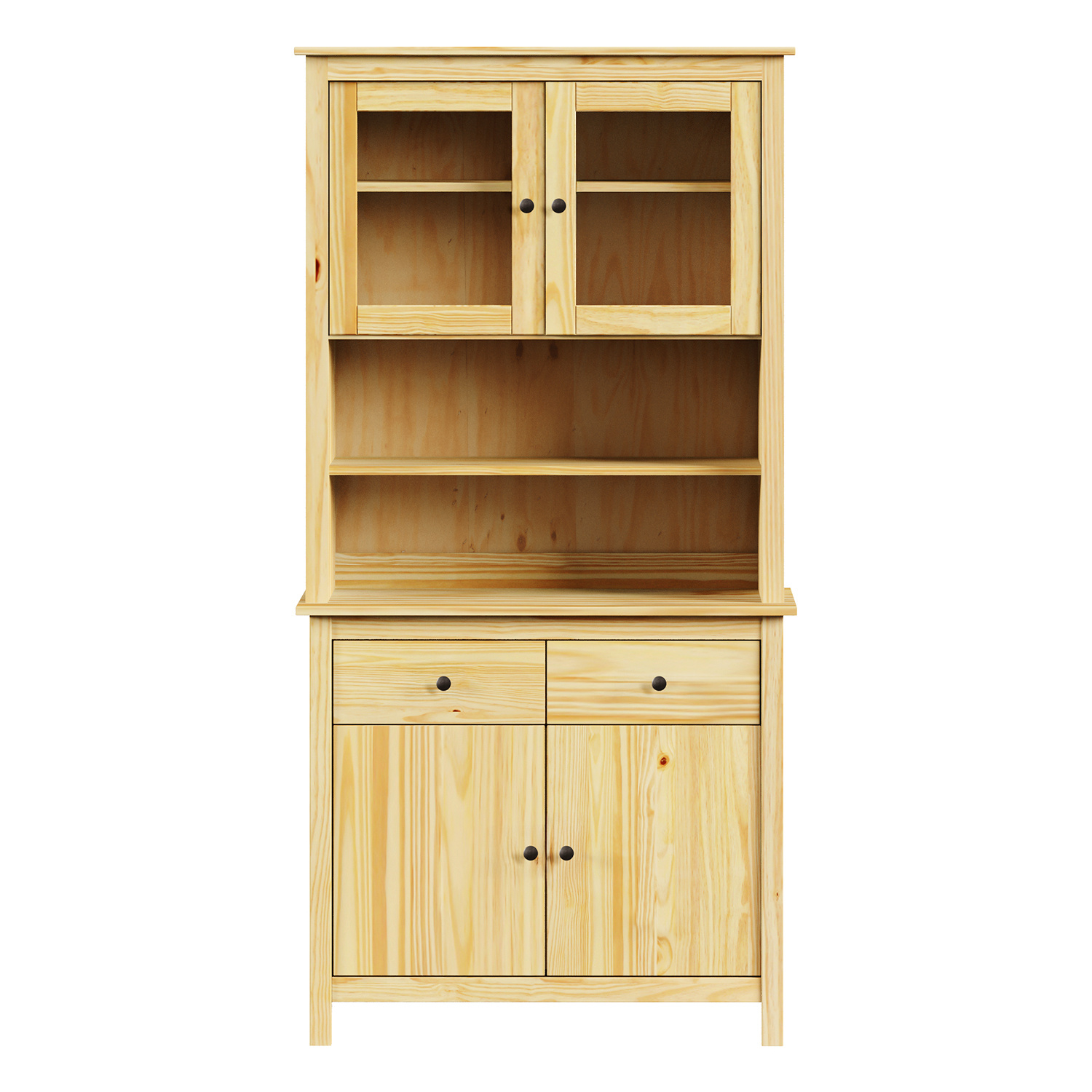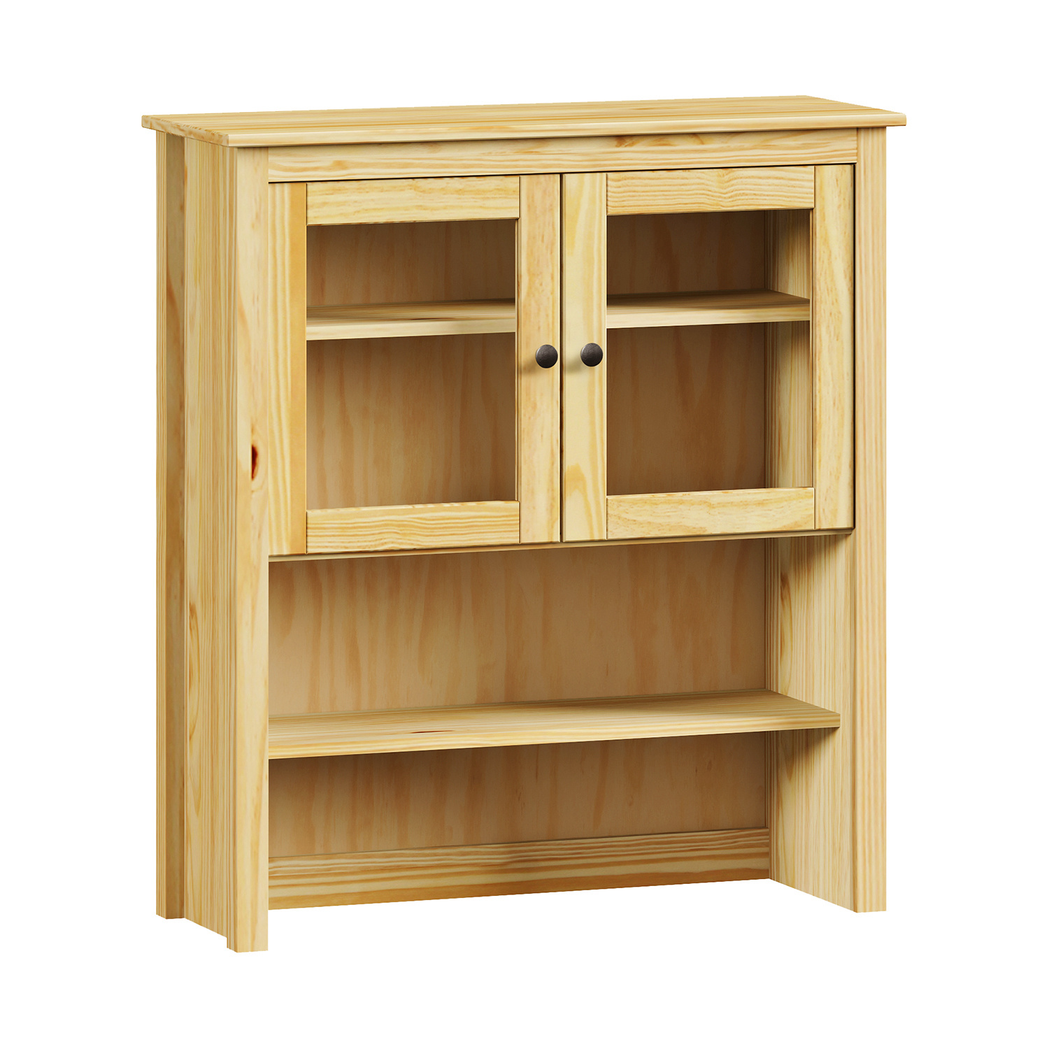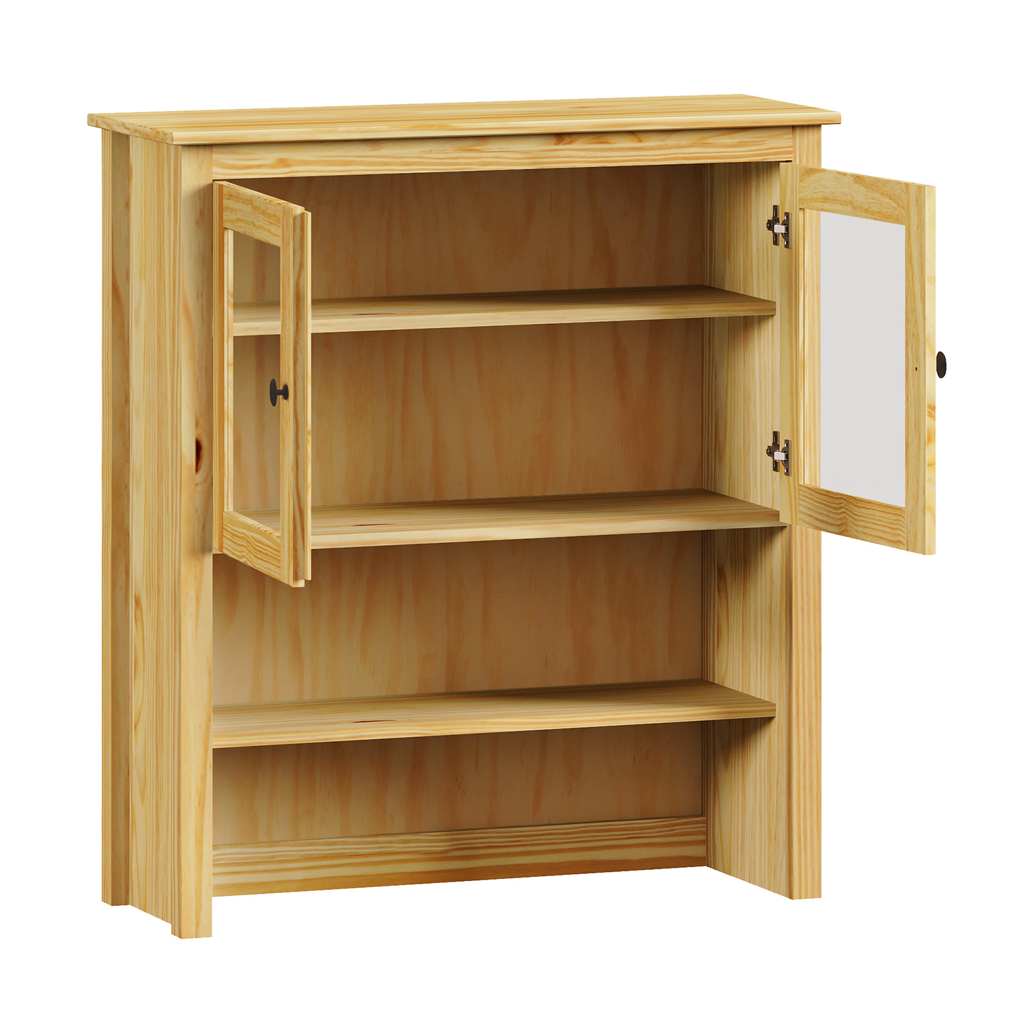 materiál masiv borovice, lakované provedení kovové úchytky 2 prosklené dveře, 1 police nástavec příborníku 8095K