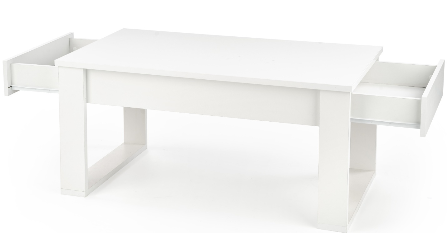 Konferenční stolek je vyroben z kvalitního lamina v bílém barevném provedení. Konferenční stůl má po obou stranách zásuvky, do které můžete schovat svou oblíbenou knihu. Zboží je dodáváno v demontu.