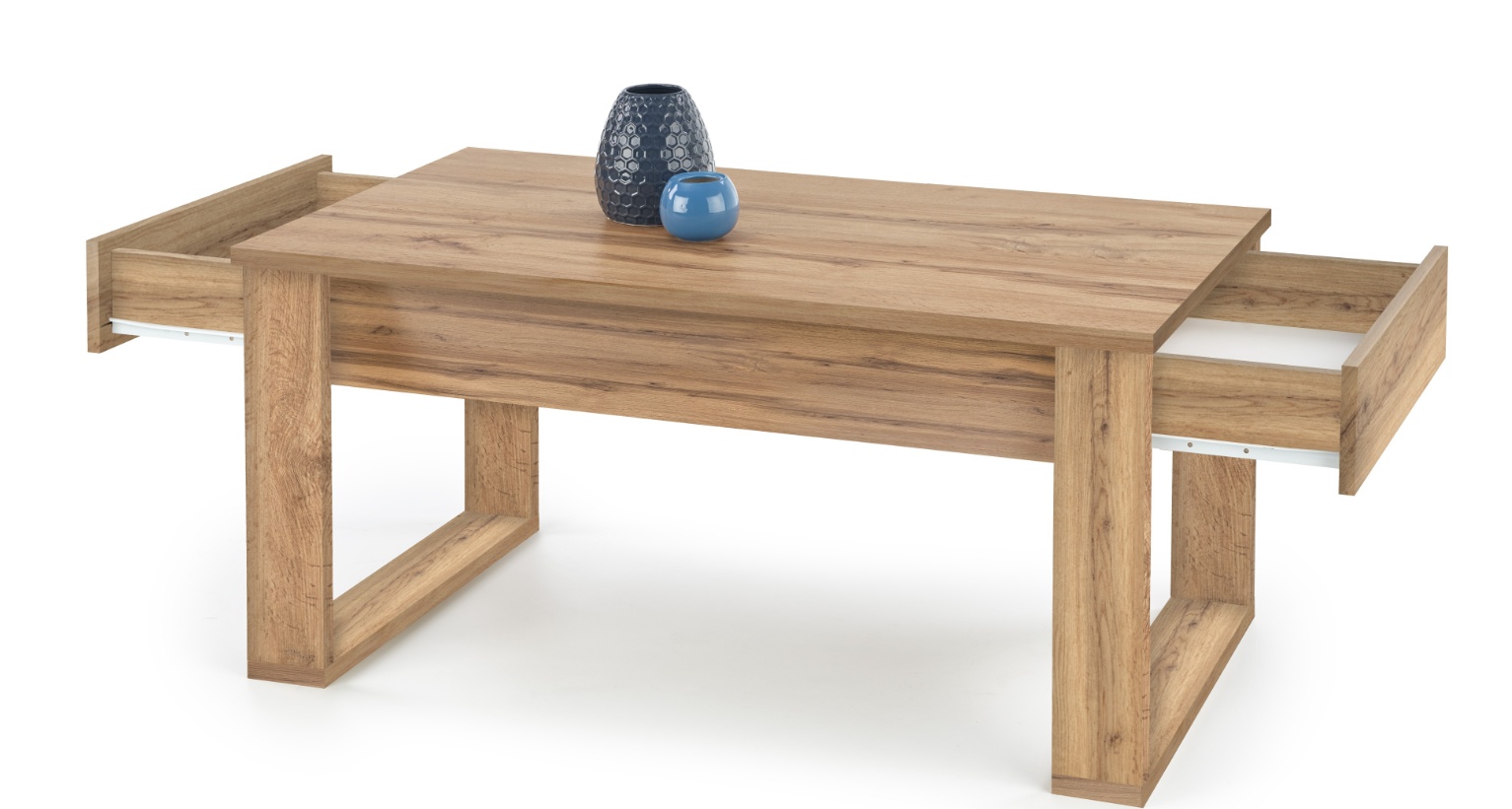 Konferenční stolek je vyroben z kvalitního lamina v barevném provedení dub wotan. Konferenční stůl má po obou stranách zásuvky, do které můžete schovat svou oblíbenou knihu. Zboží je dodáváno v demontu.