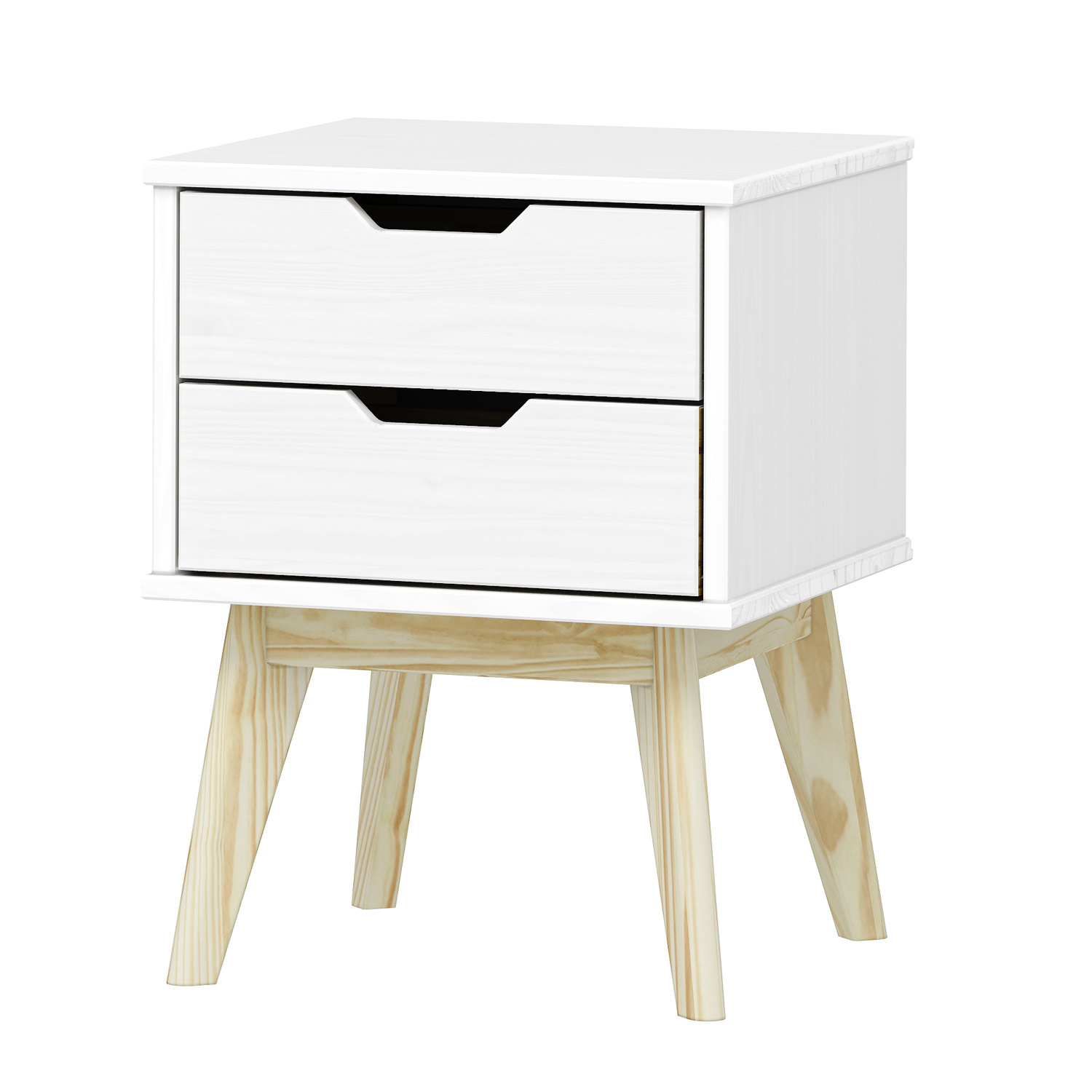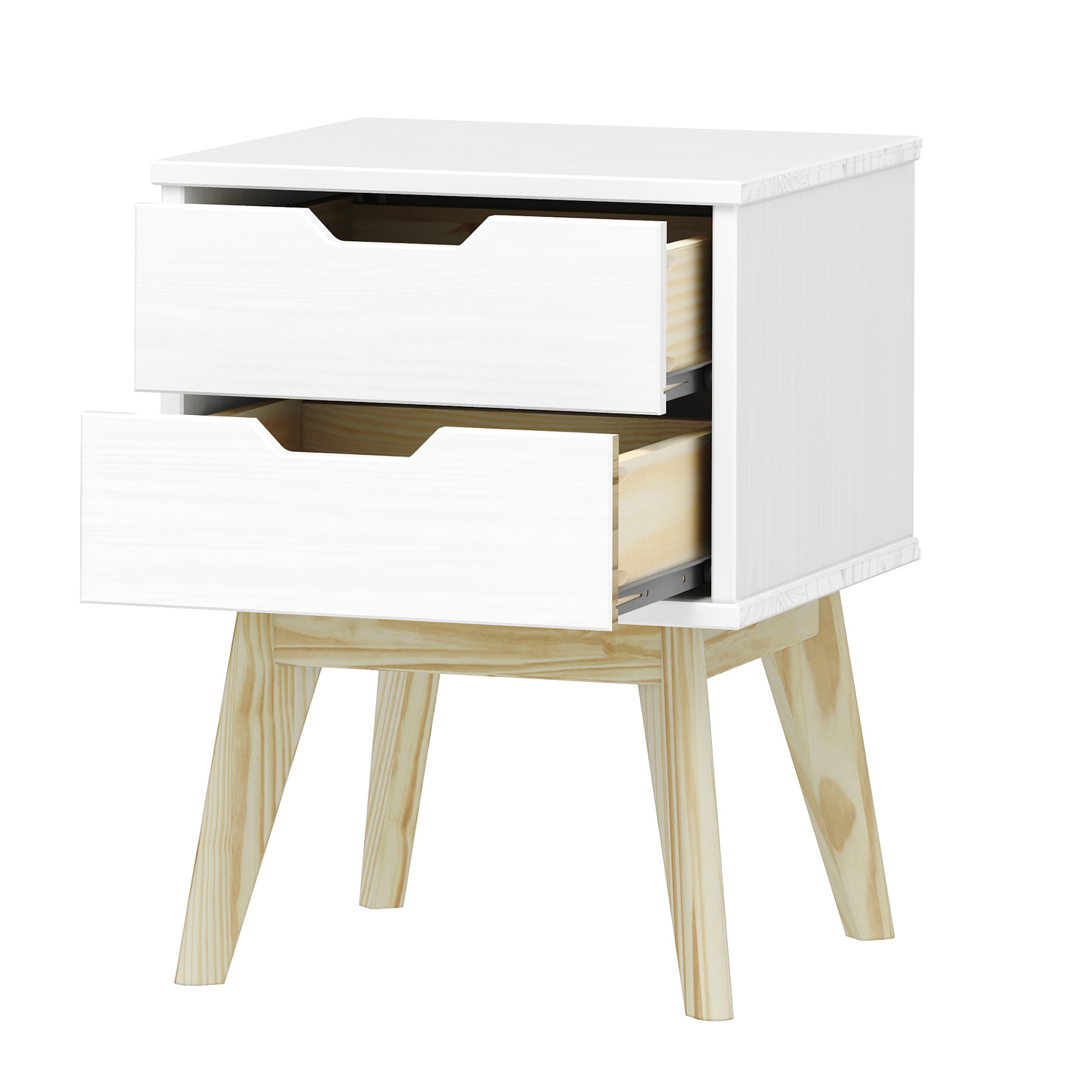 materiál masiv borovice, barevné provedení bílý lak 2 zásuvky s kovovými pojezdy