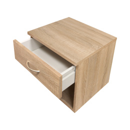 Noční stolek je vyroben z laminované dřevotřísky v barevném provedení dub sonoma. Obsahuje jednu zásuvku a odkládací prostor. Zboží dodáváme v demontu.