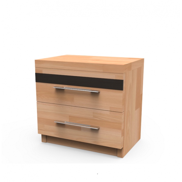 Moderní noční stolek je vyroben z masivu v barevném provedení buk cink(parketový desing) v tloušťce 40/27 mm. Běžně se vyrábí bez skla. Možnost výběru skla : BS-bílé sklo, ČS - černé sklo, MS - mocca sklo za příplatek 700,-Kč. Má dva šuplíky. Zboží je dodáváno v demontu.