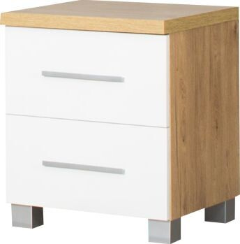 Noční stolek Panama je vyroben z kvalitního odolného lamina s 2 zásuvkami v barvě dub soma tmavý/ bílý lesk. Zboží je dodáváno v demontu.