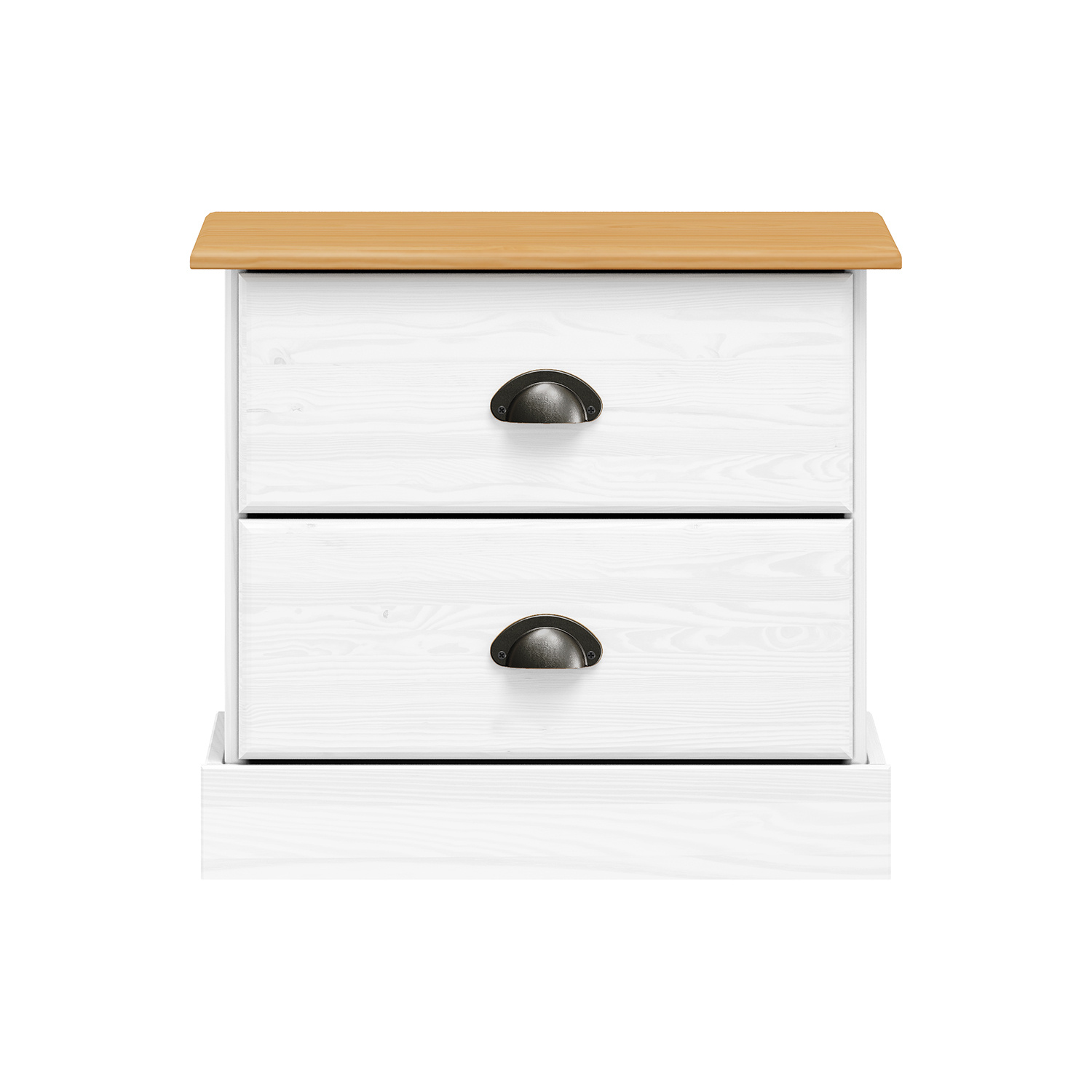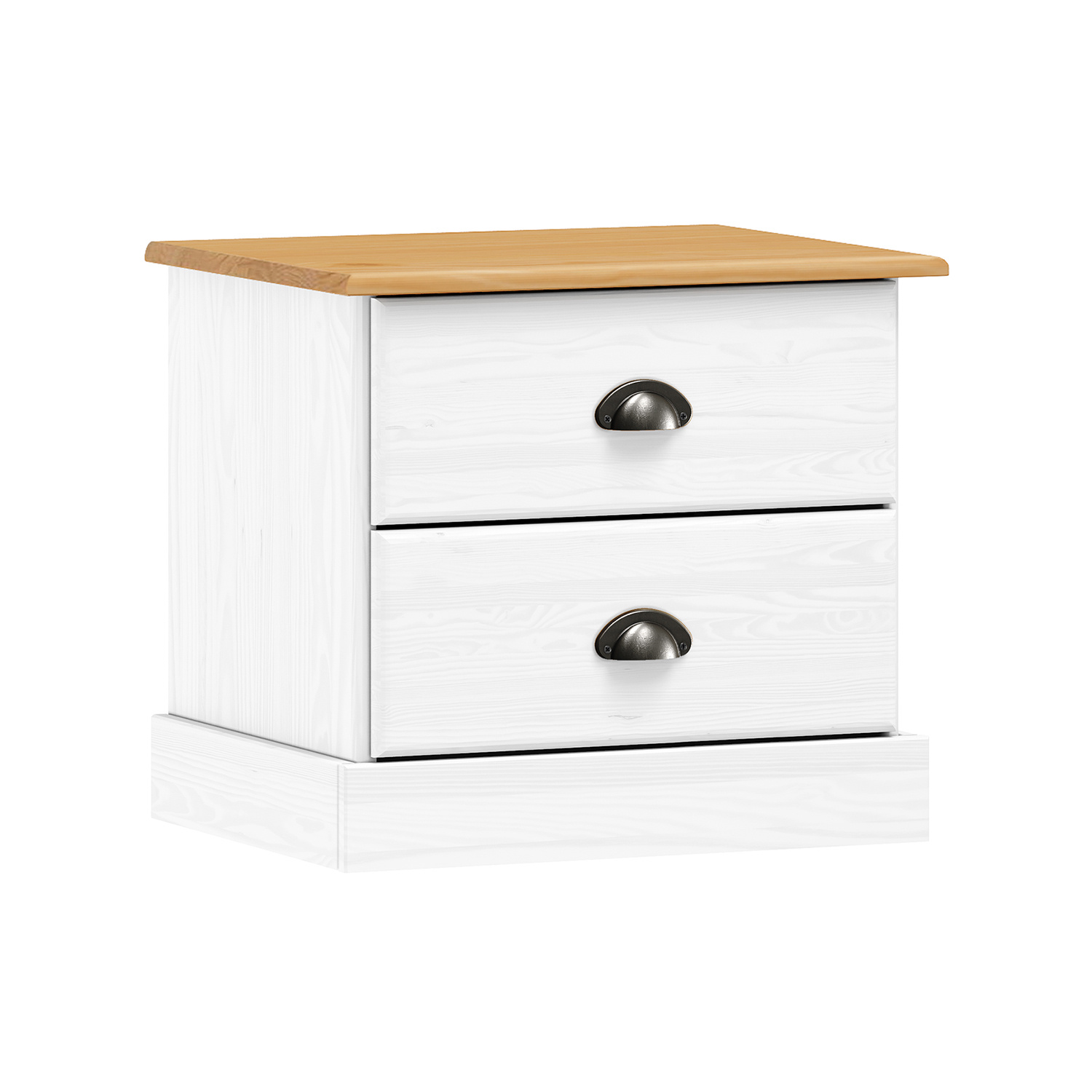 materiál masiv borovice, barevné provedení bílý lak 2 zásuvky s kovovými úchytkami a pojezdy