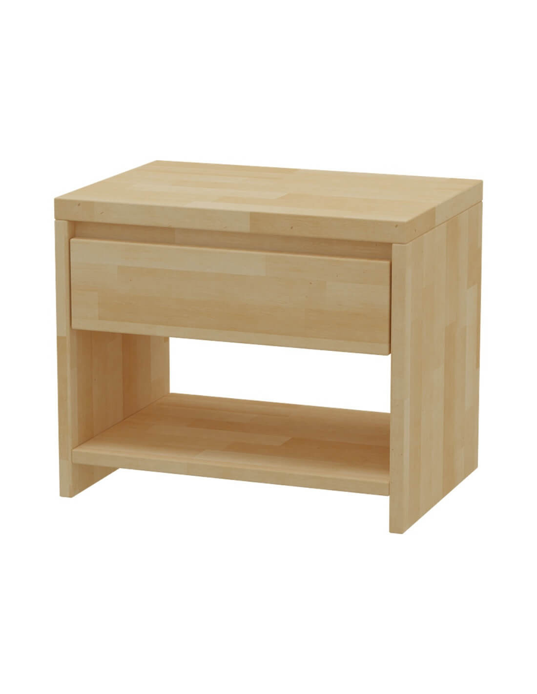 Noční stolek TNS 2 z masivního bukového dřeva v provedení buk. Tloušťka masivu 3/2 cm u masivního buku a 4/2 u jádrového buku. Povrchová úprava - lak u masivního buku nebo olejovosk u jádrového buku.
