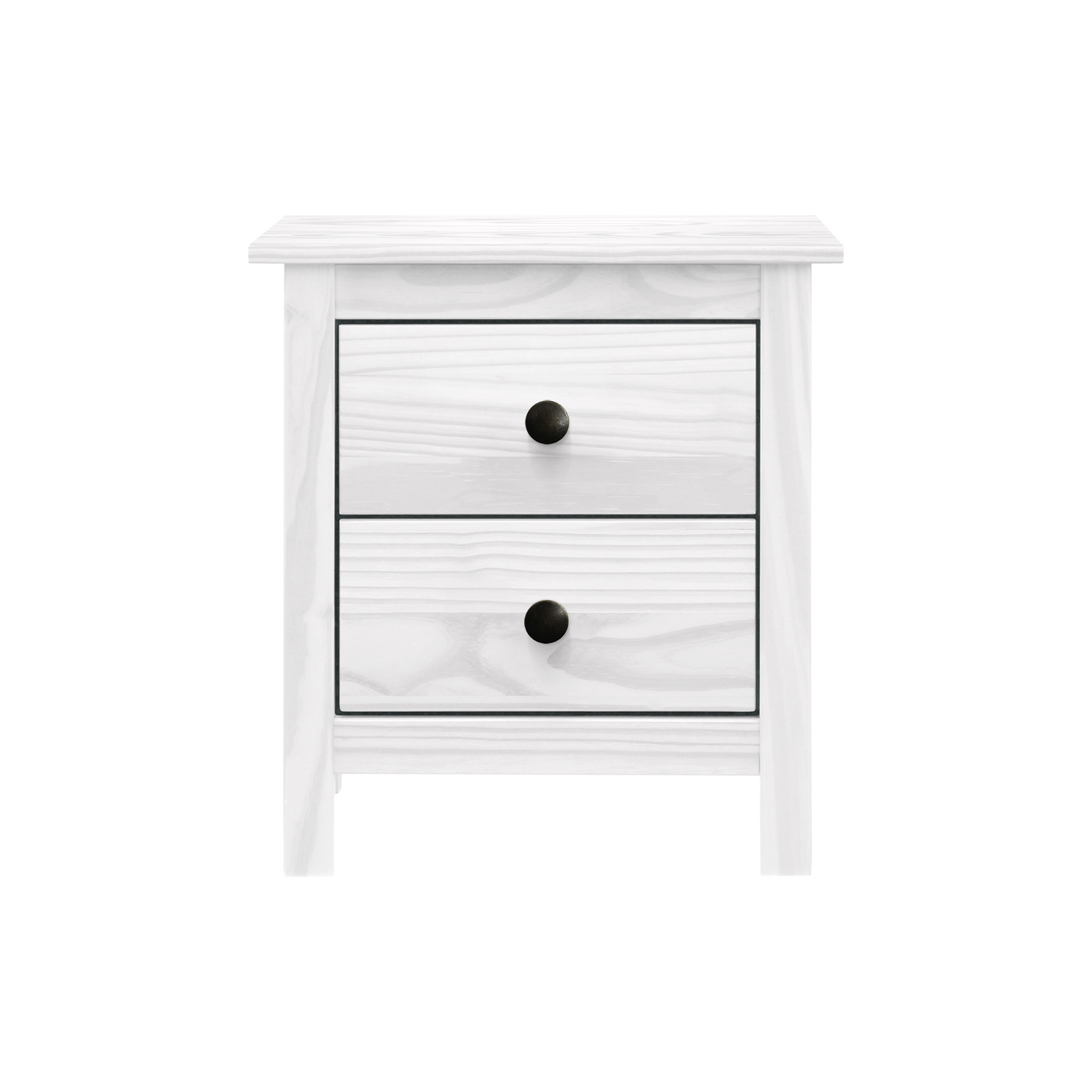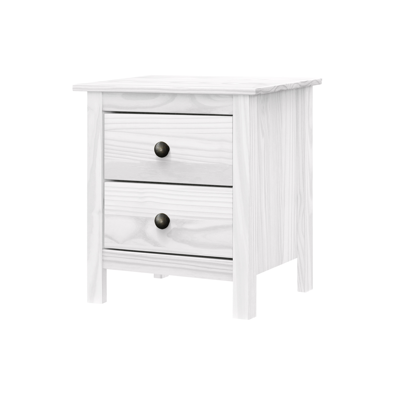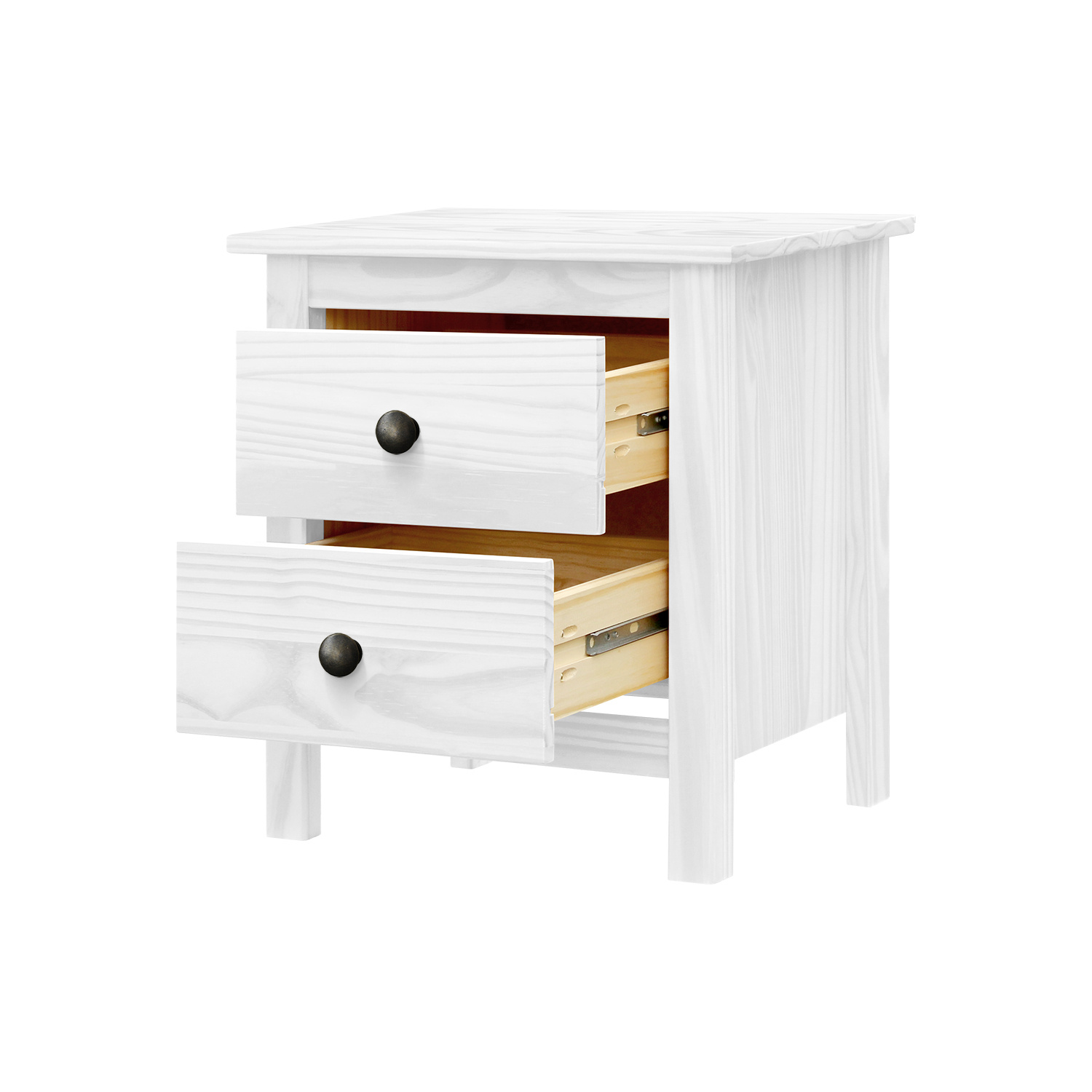 materiál masiv borovice, barevné provedení bílý lak kovové úchytky 2 zásuvky s kovovými pojezdy