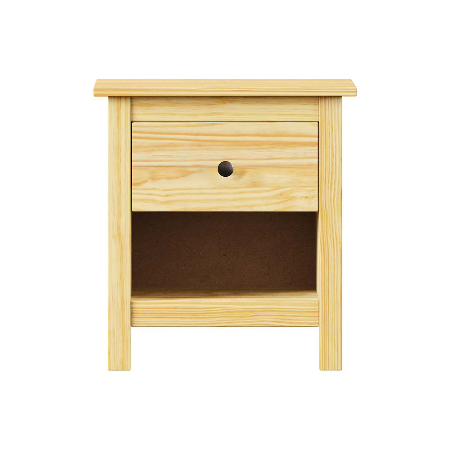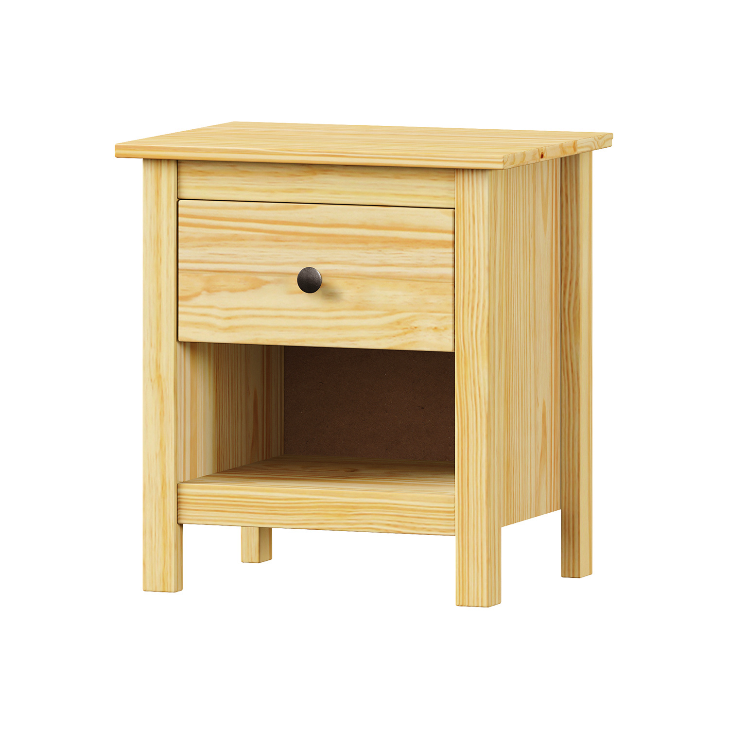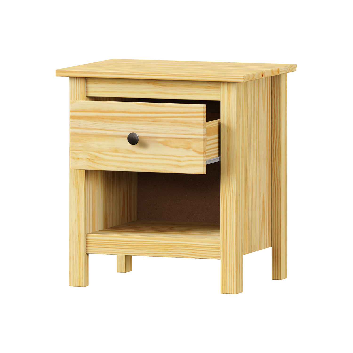 materiál masiv borovice, lakované provedení kovové úchytky jedna zásuvka s kovovými pojezdy