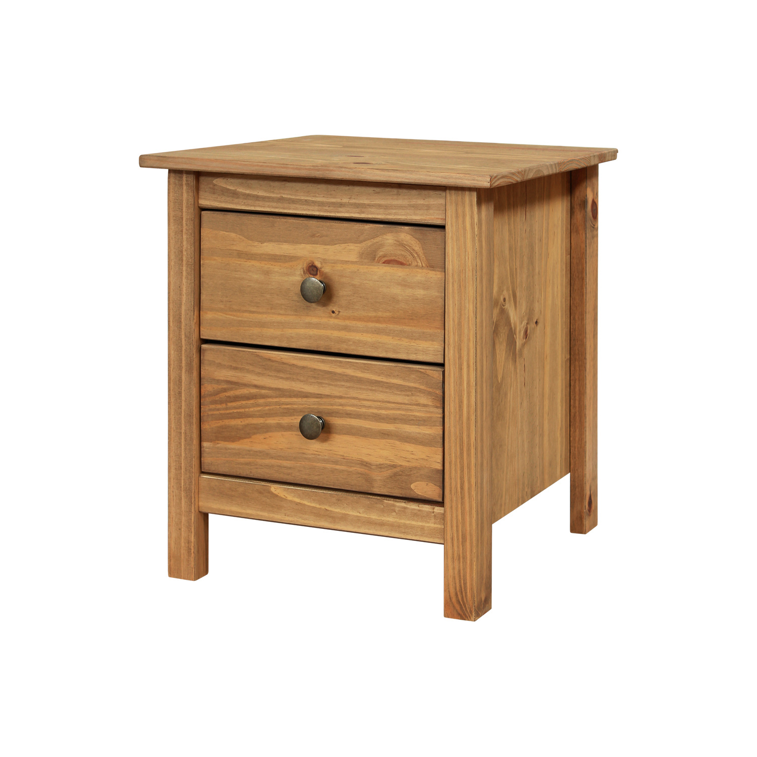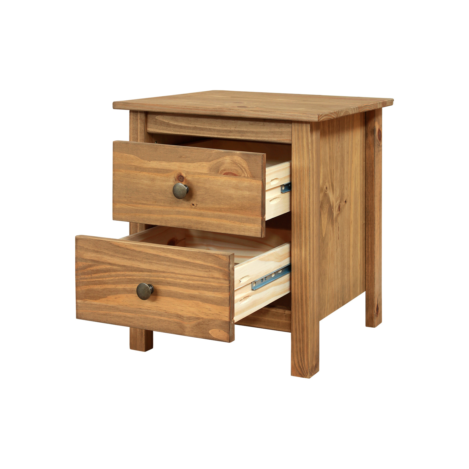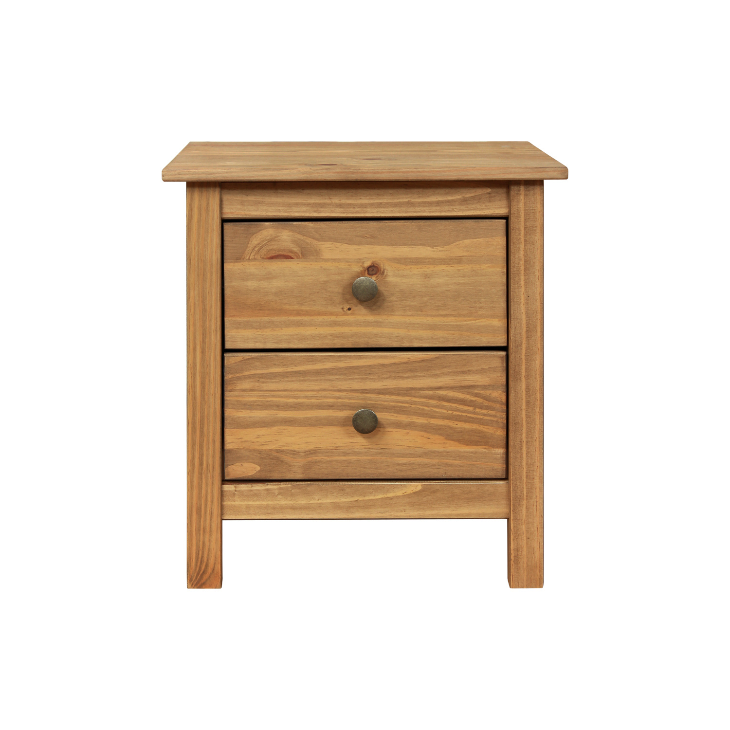 Noční stolek je vyroben z materiálu masiv borovice voskovaná v medovém odstínu. Noční stolek má 2 zásuvky s kovovými úchytkami a pojezdy. Zboží dodáváme v demontu.