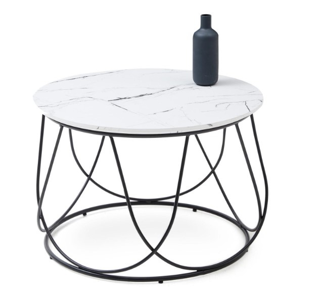Vysoce moderní kulatý konferenční stolek NUBIRA je vyrobený z kvalitního MDF lamina v barvě bílý mramor, doplněný o kovovou konstrukci z oceli malované práškové v barvě černá, která ze stolečku dělá krásný designový kus nábytku. Zboží dodáváme v demontu.