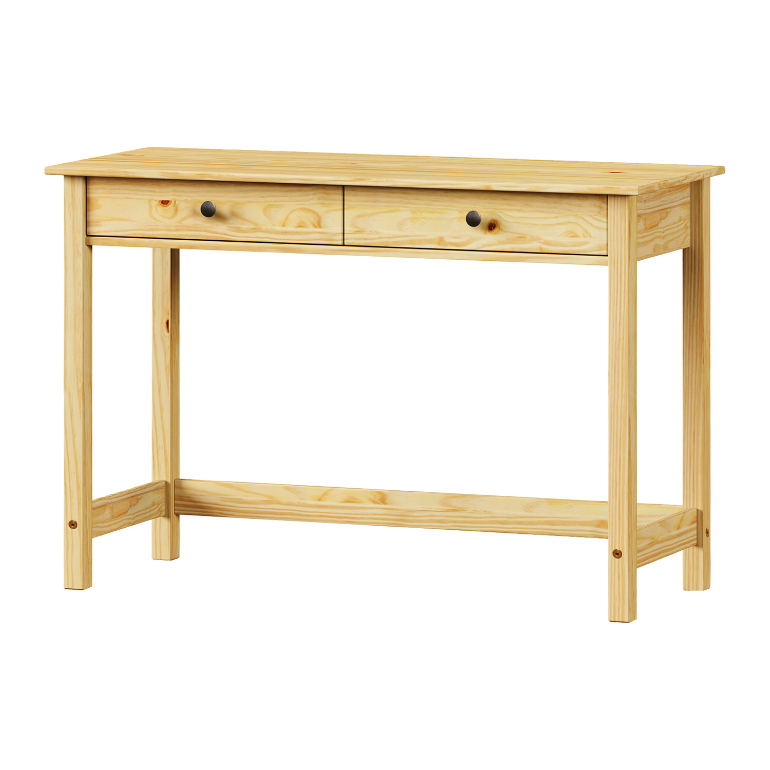 materiál masiv borovice, lakované provedení kovové úchytky dvě zásuvky s kovovými pojezdy
