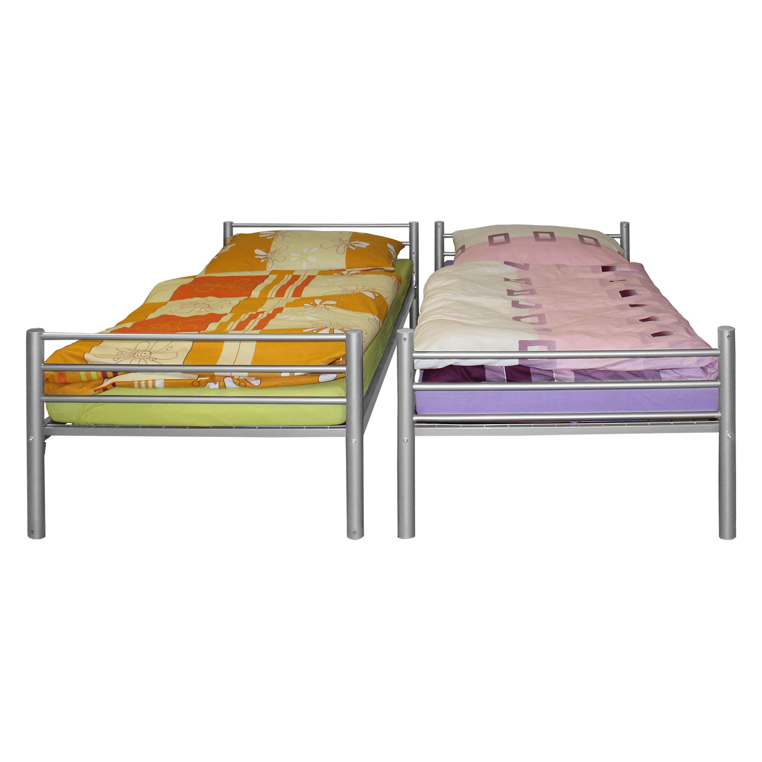 Patrová postel z kovové konstrukce v barevném provedení stříbrná. Možnost rozložení na dvě stejné postele. Nosnost jedné postele 140 kg. Uvedená cena je včetně kovových roštů. Matrace nejsou v cené. Doporučený rozměr matrace 90×200 cm. Zboží dodáváme v demontu.