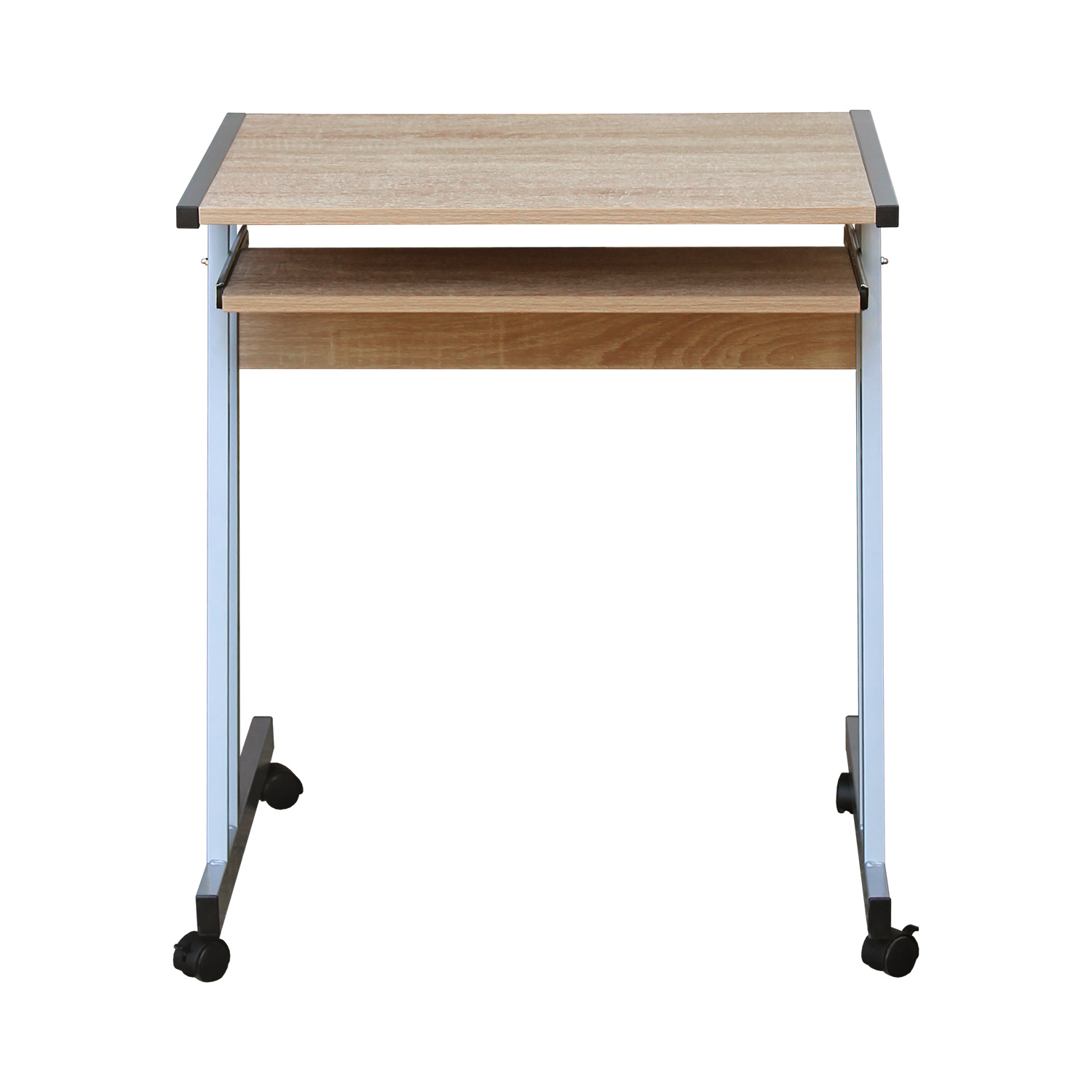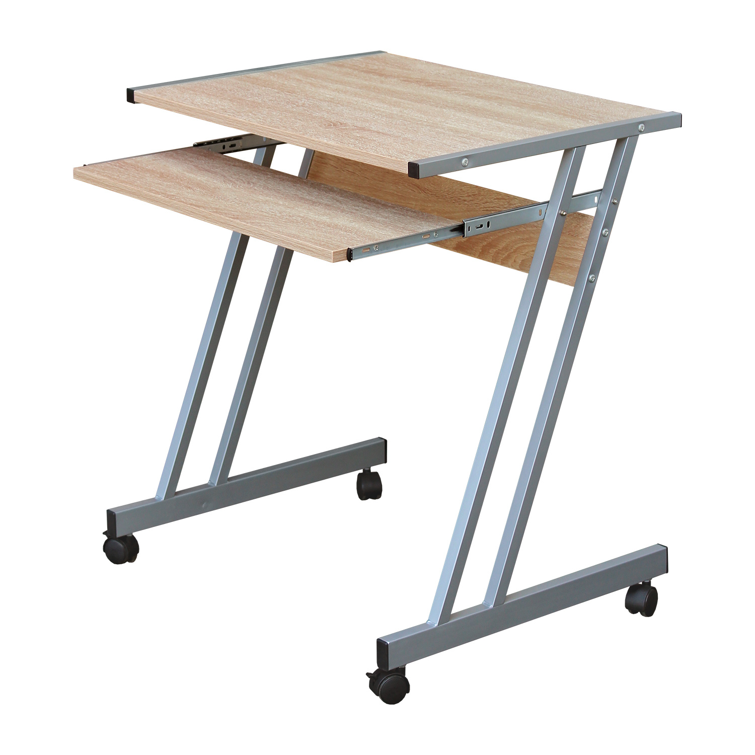 Jednoduchý počítačový stolek je zhotoven v kombinaci laminované dřevotřísky v barevném provedení buk a kovových nohou. Stolek je na kolečkách, takže je pojízdný a lze s ním snadno manipulovat. Samozřejmostí je i výsuv pro klávesnici je součastí stolu. Zboží dodáváme v demontu.